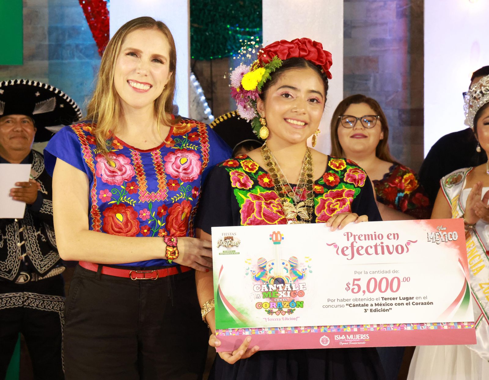 Isla Mujeres, Quintana Roo, 29 de septiembre de 2025. – En una noche llena de talento, entusiasmo y orgullo local, la Presidenta Municipal, Atenea Gómez Ricalde, encabezó la final del concurso “Cántale a México con el corazón”, que se realizó en la Explanada Municipal.