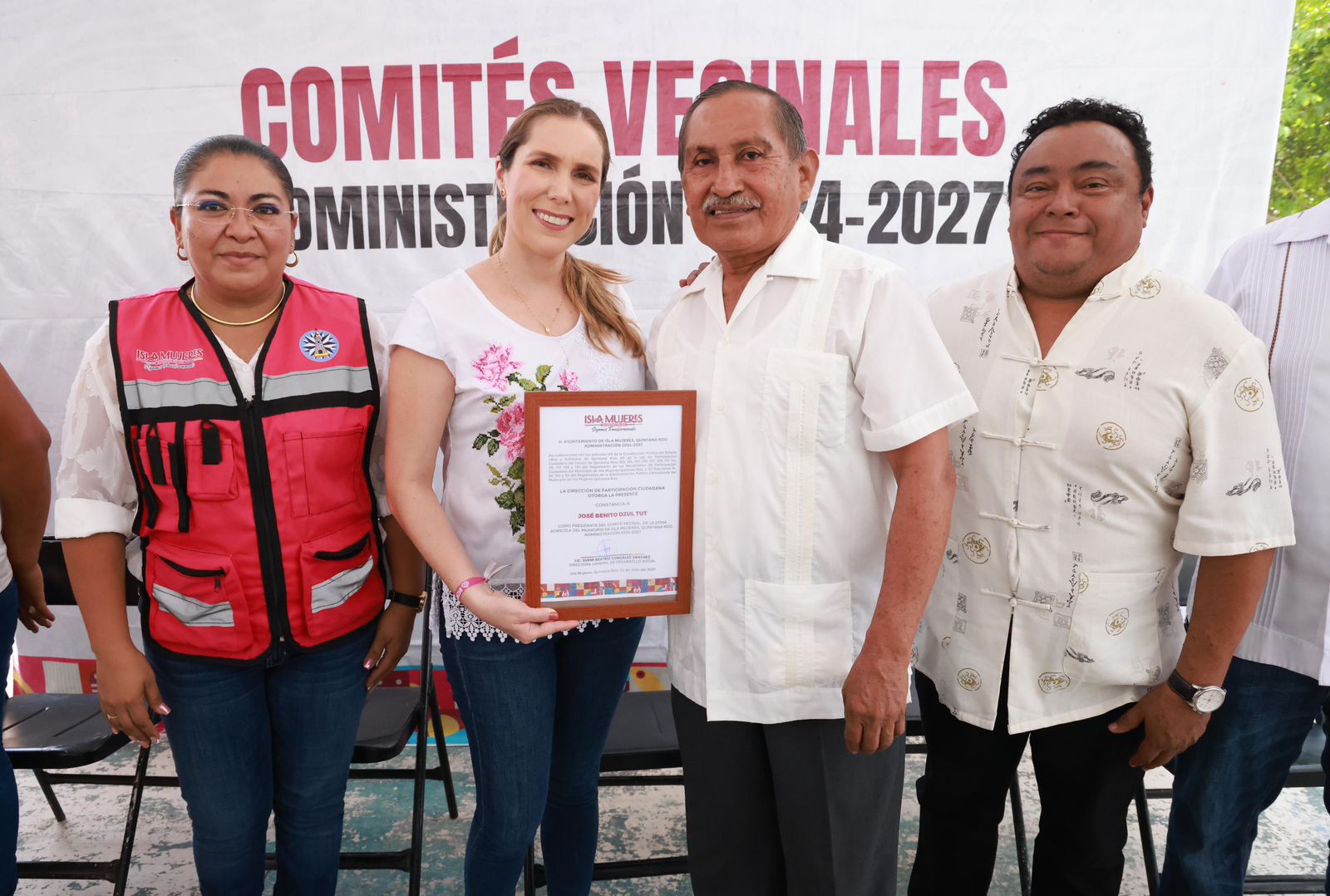 En la instalación de los Comités Vecinales, estuvieron presentes Reyna López Domínguez, la primera mujer Representante de Gobierno de Francisco May; Juan Alberto May Chan, Representante de Gobierno de la Zona Agrícola; la Directora General de Desarrollo Social, Suemi Beatriz González Sánchez y el Regidor Jesús Orlando Silva Koh.