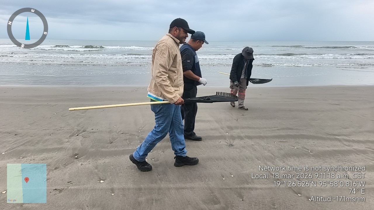 Durante la jornada, personal de Pemex realizó labores de limpieza en distintos puntos del litoral de Veracruz. En Playa Jicacal operaron cuatro frentes de trabajo integrados por 25 personas cada uno, con un supervisor técnico por frente; en Playa Linda, dos frentes con 20 personas cada uno y su respectivo supervisor técnico; en Playa Barrillas, dos frentes de trabajo también conformados por 20 personas y un supervisor técnico por frente; mientras que en la Laguna del Ostión se desplegó un frente de trabajo integrado por 10 personas bajo la supervisión de personal técnico especializado.