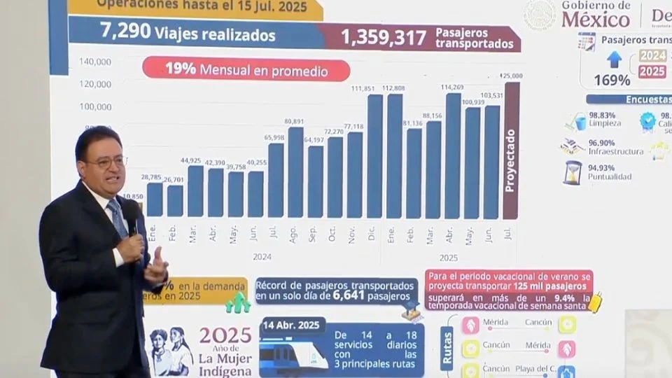 Además, dijo que el último día que hubo más pasajeros en el Tren Maya fue el pasado 20 de abril con 6 mil 641 y estimó que en este periodo vacacional, la cifra pueda aumentar hasta los 7 mil.