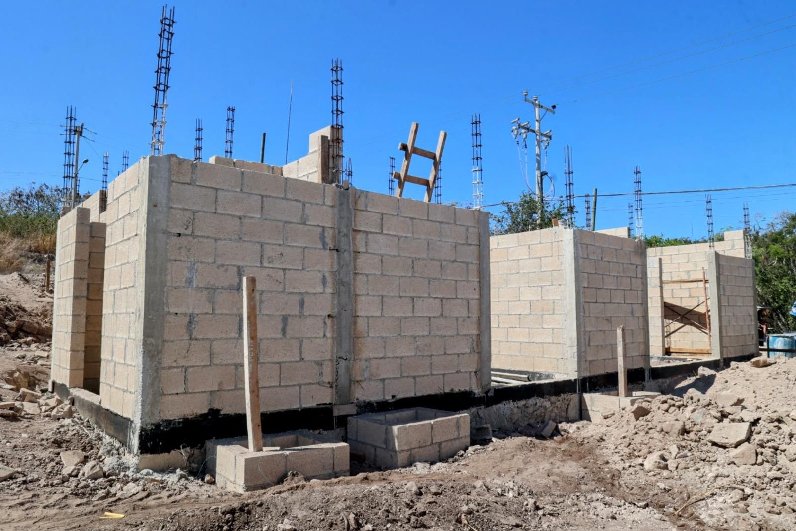 Durante las últimas semanas, se completaron trabajos para la estructura del edificio, entre ellos la colocación y pegado con cemento de los muros de block, que ya avanzó al 50%, así como la instalación total de los bloques para los registros sanitarios e hidráulicos.