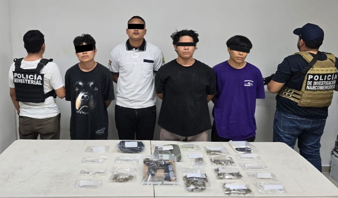 CANCÚN, QRoo, 26 de marzo de 2025.- En un operativo estratégico, la Fiscalía General del Estado de Quintana Roo asestó un golpe al narcomenudeo con la detención de seis presuntos implicados en la distribución de drogas en el municipio de Benito Juárez. Los arrestados fueron identificados como Ángel Eduardo “N”, Miguel Ángel “N”, Juan Carlos “N”, Víctor David “N”, Eduardo “N” y Carla Beatriz “N”.