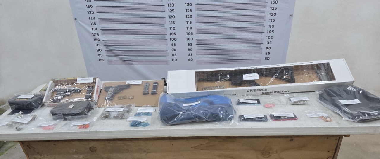 Tras la revisión, a los detenidos se les aseguró un arsenal que incluía dos armas de fuego cortas y un arma de fuego larga tipo fusil, junto con cargadores abastecidos y cartuchos útiles.