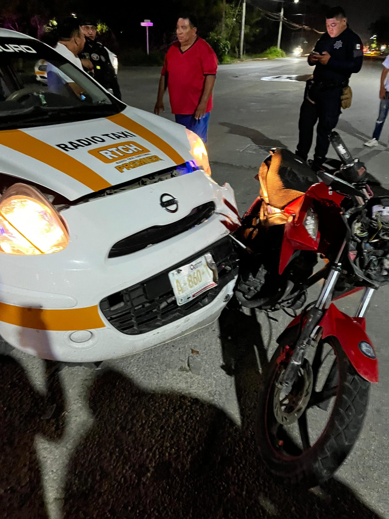 CHETUMAL, 15 de agosto. – Un aparatoso accidente entre un automóvil de servicio público y una motocicleta dejó como saldo lesiones de extrema gravedad para el conductor del vehículo menor, quien sufrió la amputación completa de una mano. El percance se registró en el cruce de las avenidas Antonio Handall con Evia Cámara, en una zona de alto tránsito de la capital del estado.