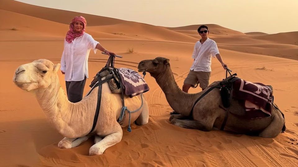 Durante su viaje a Marruecos, madre e hijo cumplieron su sueño de pasear en camello