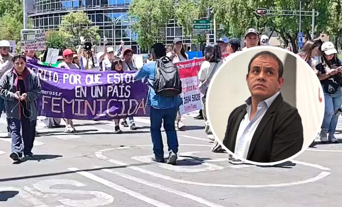 Horas antes, en la glorieta en donde se realizó un primer mitin, las mujeres gritaron en repetidas ocasiones: “Que lo vengan a ver, que lo vengan a ver, Cuau no es diputado es un violador y macho burgués”. Otras cargaban pancartas en las que se pedía a la mandataria Claudia Sheinbaum Pardo: Presidenta rompa el pacto; Presidenta, mujeres congresistas, no llegamos todas y nos agreden, nos desaparecen y el gobierno de una mujer nos abandona.