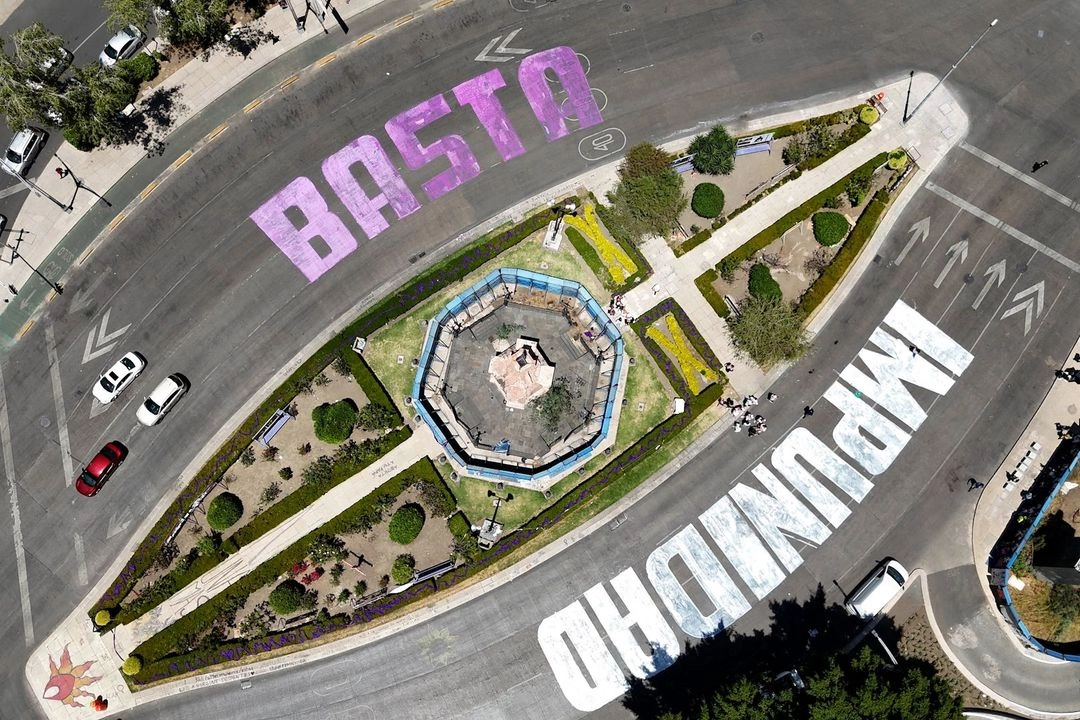 Las feministas escribieron en el asfalto con letras gigantes ningún agresor en el poder 3 de 3, frente al Caballito y en la Glorieta de las Mujeres que Luchan quedó plasmada la palabra Impunidad. Sobre las letras blancas, quemaron una camiseta de la selección mexicana con el número 10, en la que se leía Blanco.