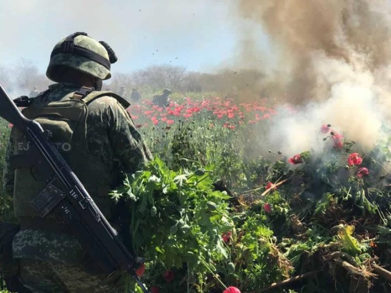 Los plantíos de droga se descubrieron al realizar reconocimientos terrestres y aéreos, por lo que el personal militar estableció perímetros de seguridad y destruyó alrededor de 12.9 hectáreas de amapola y 4.3 hectáreas de mariguana, lo equivalente a 3.7 veces la Plaza de la Constitución de la Ciudad de México.