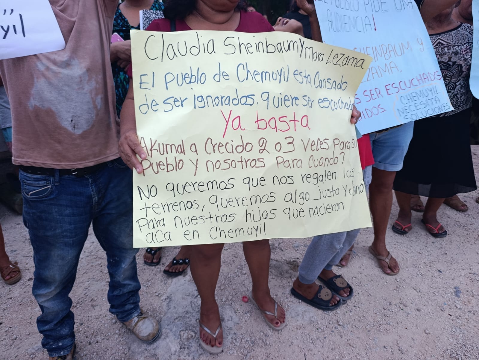 “Claudia Sheinbaum y Mara Lezama prácticamente dejaron fuera del proyecto Bienestar a muchas familias. Aquí seguimos viviendo en una sola casa varias familias completas. Eso no es justo. La gente que vino a recoger los documentos en Tulum se portó de manera déspota y grosera con la gente de Chemuyil. Les pedimos que nos escuchen. Queremos soluciones, porque la gente ya está cansada”, denunciaron los habitantes.