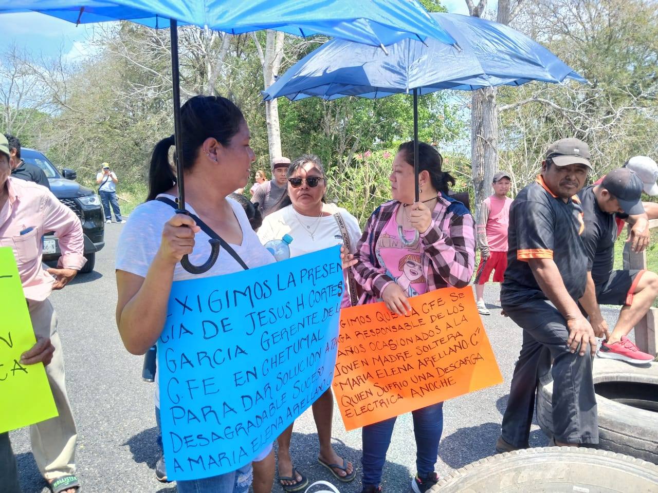 En sus cartelones de protesta, los pobladores exigieron la presencia del superintendente de la CFE en Chetumal, Jesús Cortés García, para dar soluciones a sus demandas y responder por los daños sufridos por la ciudadana María Elena Arellano Caamal, quien es madre soltera.