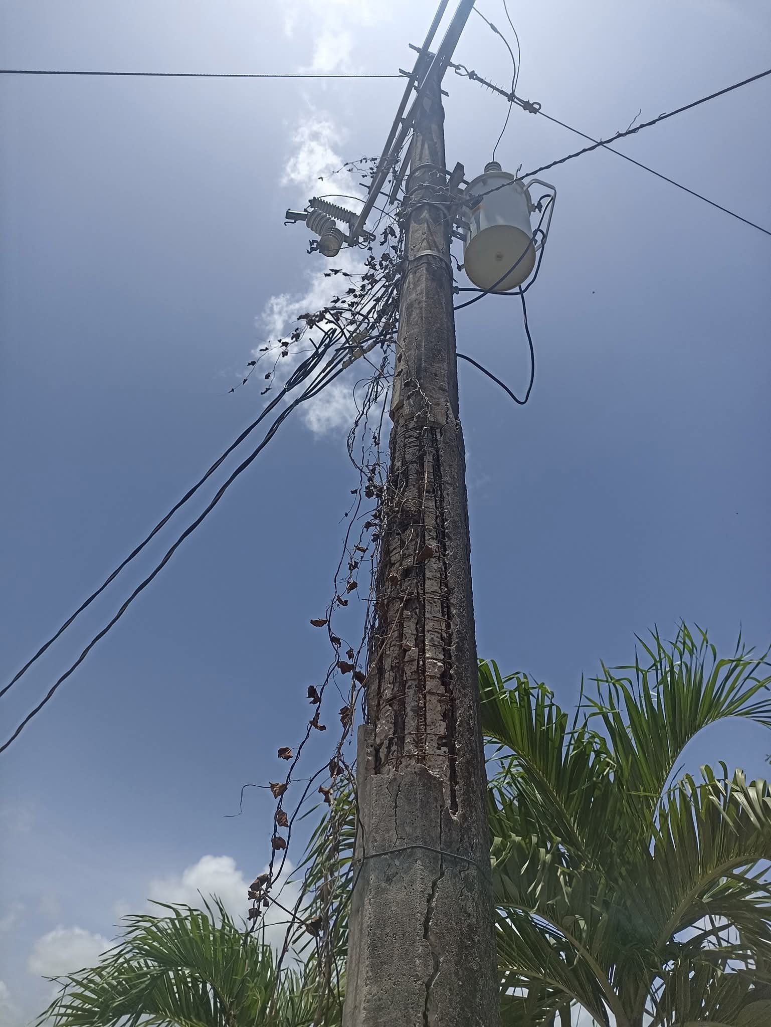 De acuerdo con los pobladores, son varios los puntos de la comunidad donde los postes muestran inclinaciones notorias, bases debilitadas y estructuras visiblemente corroídas. El problema se ha vuelto más alarmante debido a los vientos intensos que han afectado la zona en los últimos días, los cuales podrían provocar la caída de estos postes en cualquier momento.