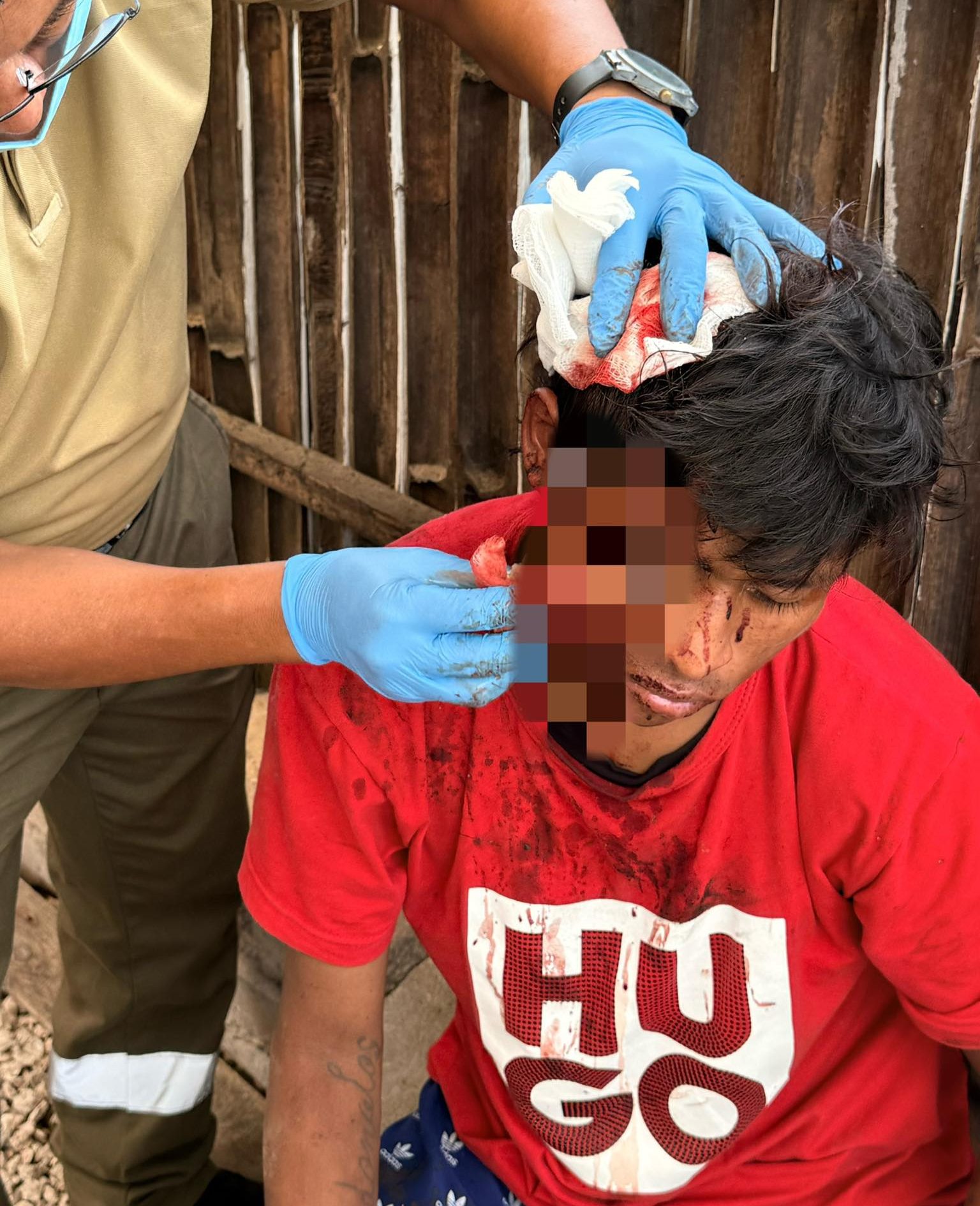 Pocos minutos después, otro hombre fue localizado desmayado afuera de una pollería con venta de costillas asadas, donde también fue reportado por los propios vecinos. Este presentaba una herida profunda en la cabeza, múltiples lesiones faciales y sangrado abundante.