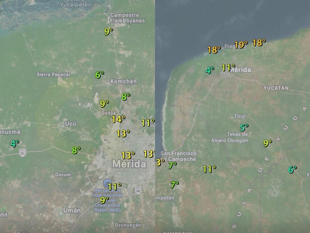 • Masa de aire frío provoca temperaturas extremas en Yucatán; Mérida, sur del estado y municipios del interior registran mínimos poco comunes