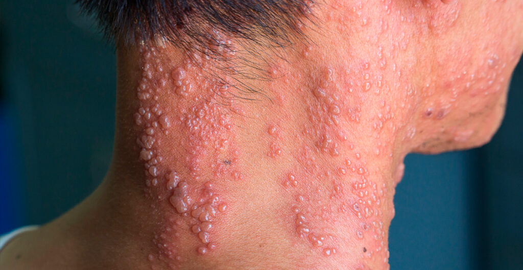 El herpes zóster se manifiesta a través de ampollas dolorosas que suelen aparecer en una zona específica del cuerpo, como: