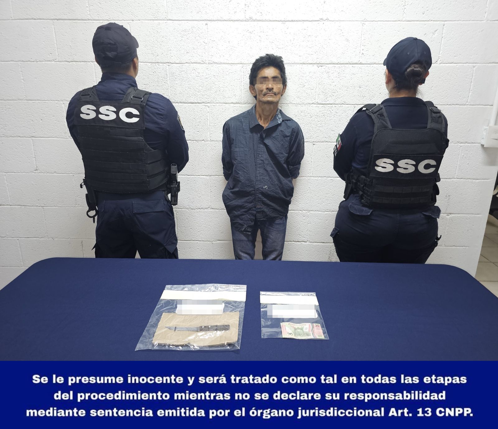 Los hechos ocurrieron en la intersección de la 11 Avenida con 85 Avenida Sur Bis, donde Hermilo “N” fue detenido tras protagonizar una escena digna de una película de acción: salió corriendo del establecimiento justo cuando una patrulla realizaba labores de vigilancia por la zona.