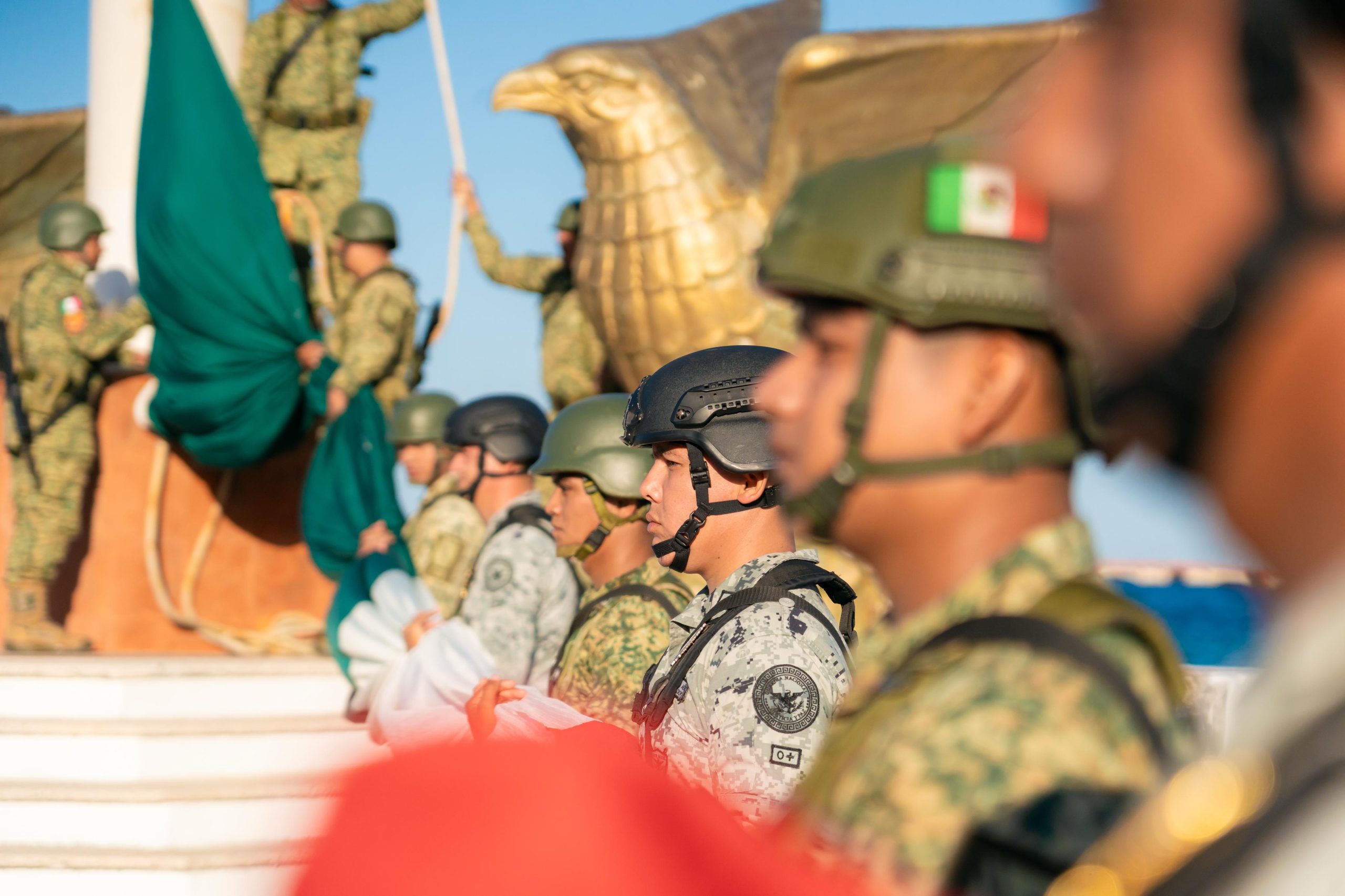 Previo a realizar los respectivos honores al lábaro patrio, elementos de la Defensa Nacional realizaron el izamiento de la bandera a media asta en honor al “Caudillo del Sur” Emiliano Zapata. Como parte de este evento al que asistieron los representantes de las fuerzas armadas y estudiantes de primaria, la alumna Graciela Itzayana Chacón Dzul, de la escuela Federico Froebel, realizó el juramento a la bandera, y al término del acto protocolario fue colocada una ofrenda floral en la base del asta bandera en honor al líder revolucionario que luchó por la paz social e igualdad en nuestro país.