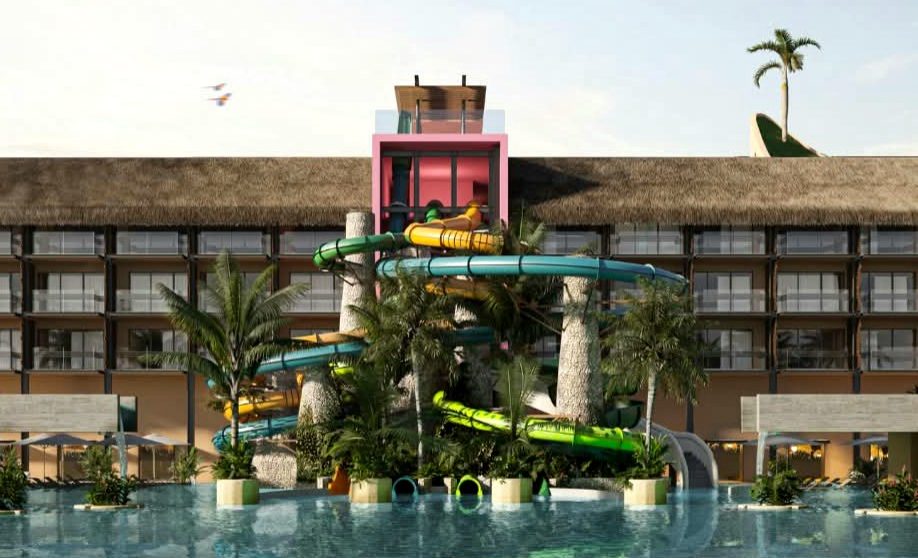 Casa Vida se convertirá en el epicentro de la aventura con cinco nuevos toboganes, cuatro de los cuales desembocan en la alberca central y un quinto, del tipo Kamikaze, que inicia en un mirador del rooftop y culmina en una piscina interior.