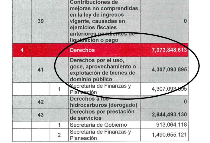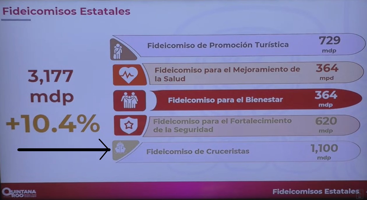 Este impacto presupuestal deriva de que el presupuesto contempla una recaudación de 4 mil 300 millones de pesos por el cobro de derechos por uso y aprovechamiento de bienes de dominio público del estado, pero aquí también se incluye el cobro del Derecho a Cruceristas, del cual el estado espera captar 1 mil 100 millones de pesos, por lo que la porción restante y mayor correspondería al Visitax cobrado con el método de retención en centros de hospedaje.