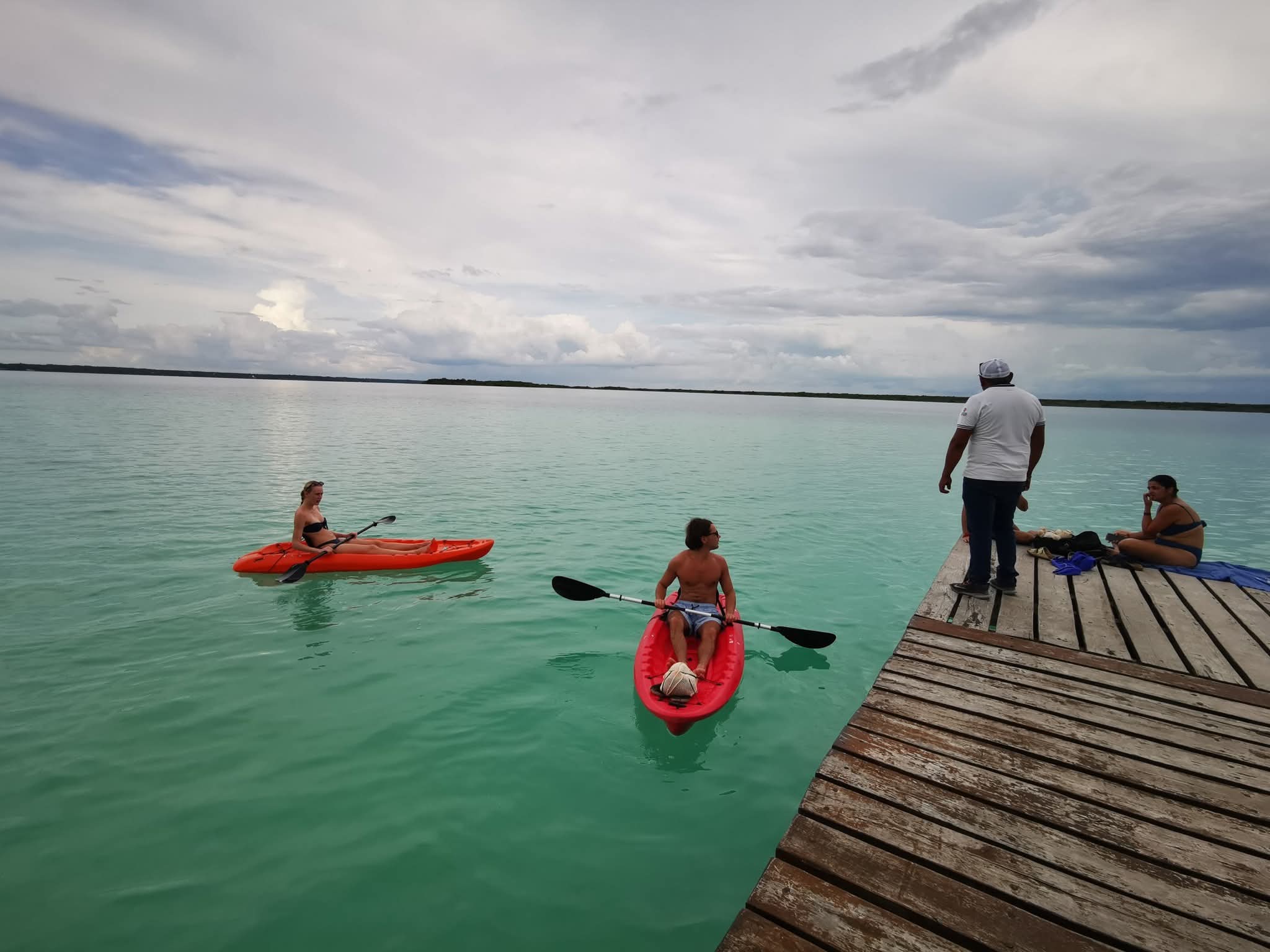 Bacalar, 16 de octubre. A pesar de que cada miércoles está destinado al descanso ecológico de la Laguna de los Siete Colores, diversas embarcaciones, kayaks, motos acuáticas y tablas de paddle board hacen caso omiso navegando en distintos puntos del cuerpo lagunar, sin chalecos salvavidas y, en algunos casos, acercándose de forma peligrosa a los muelles y manglares.
