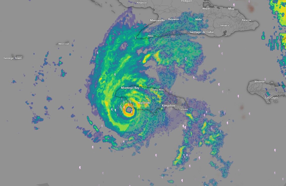 La pared del ojo del huracán ya llega a la costa sur de Jamaica, según imágenes satelitales y pronósticos meteorológicos, la llegada oficial a tierra firme del centro del ojo podría producirse “a última hora de esta mañana o primeras horas de la tarde”.