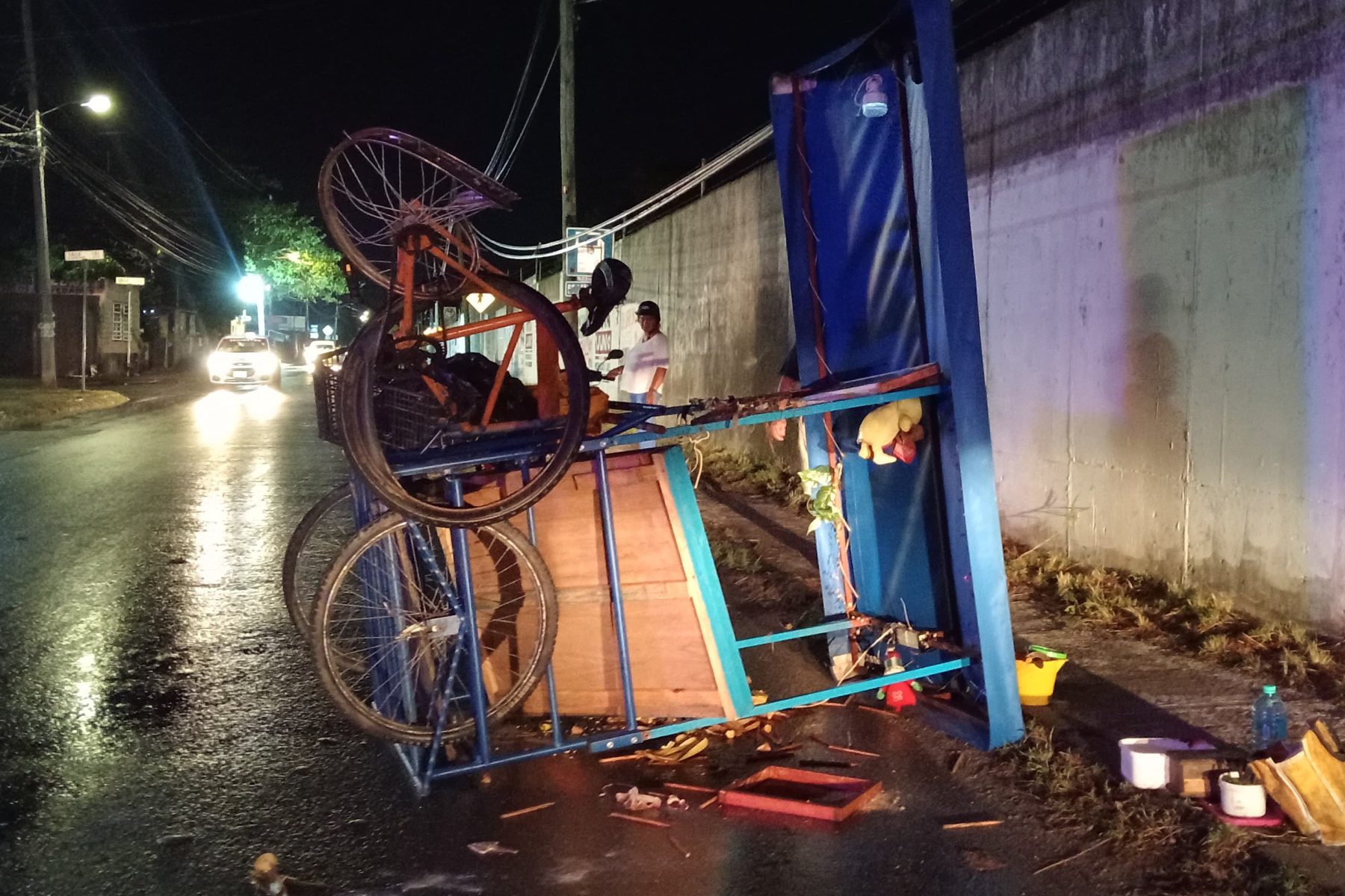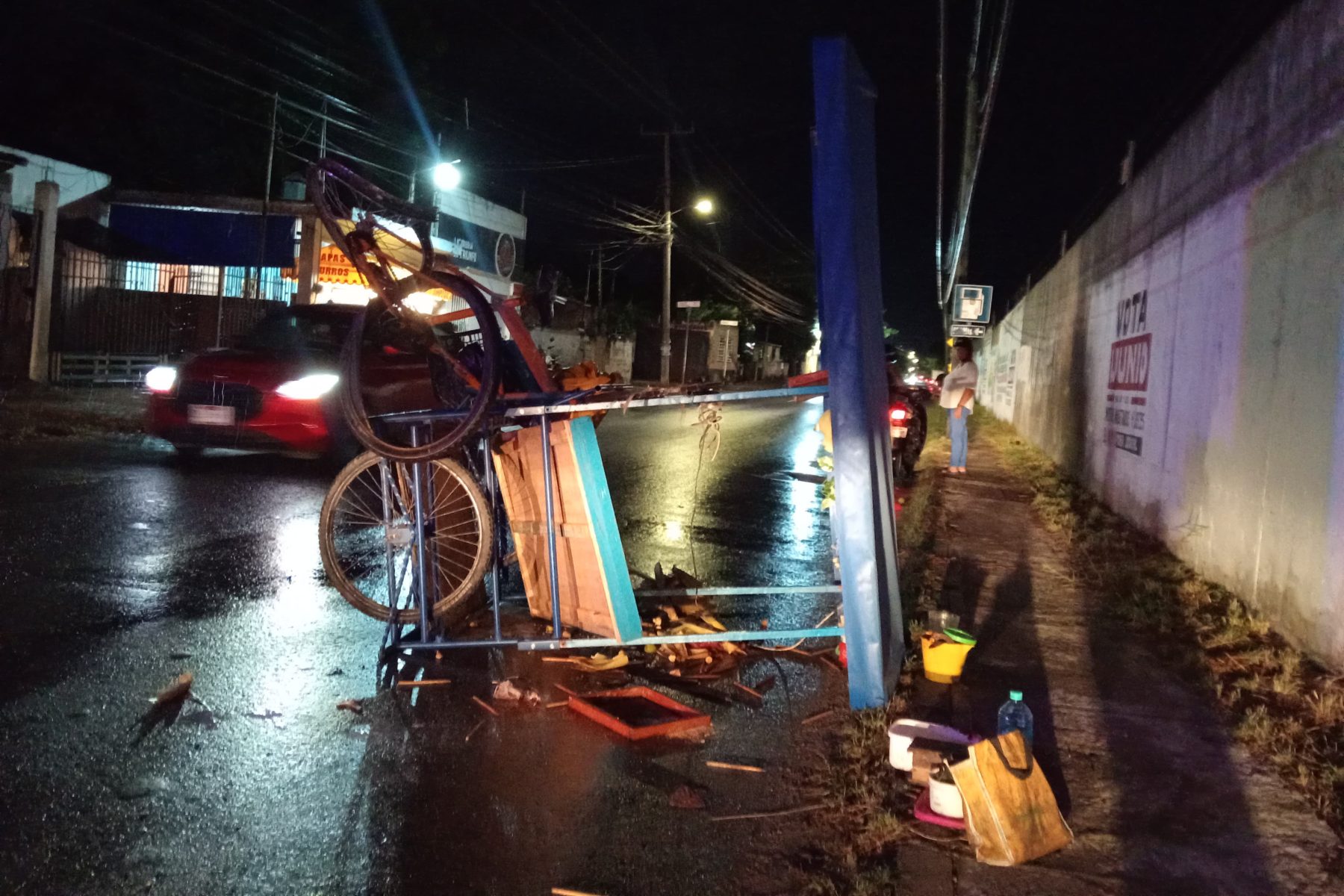 Los dos vehículos transitaban en la misma dirección, pero la camioneta iba sin luces, por lo cual su guiador no vio al triciclo que tenía adelante y lo chocó y volteó.