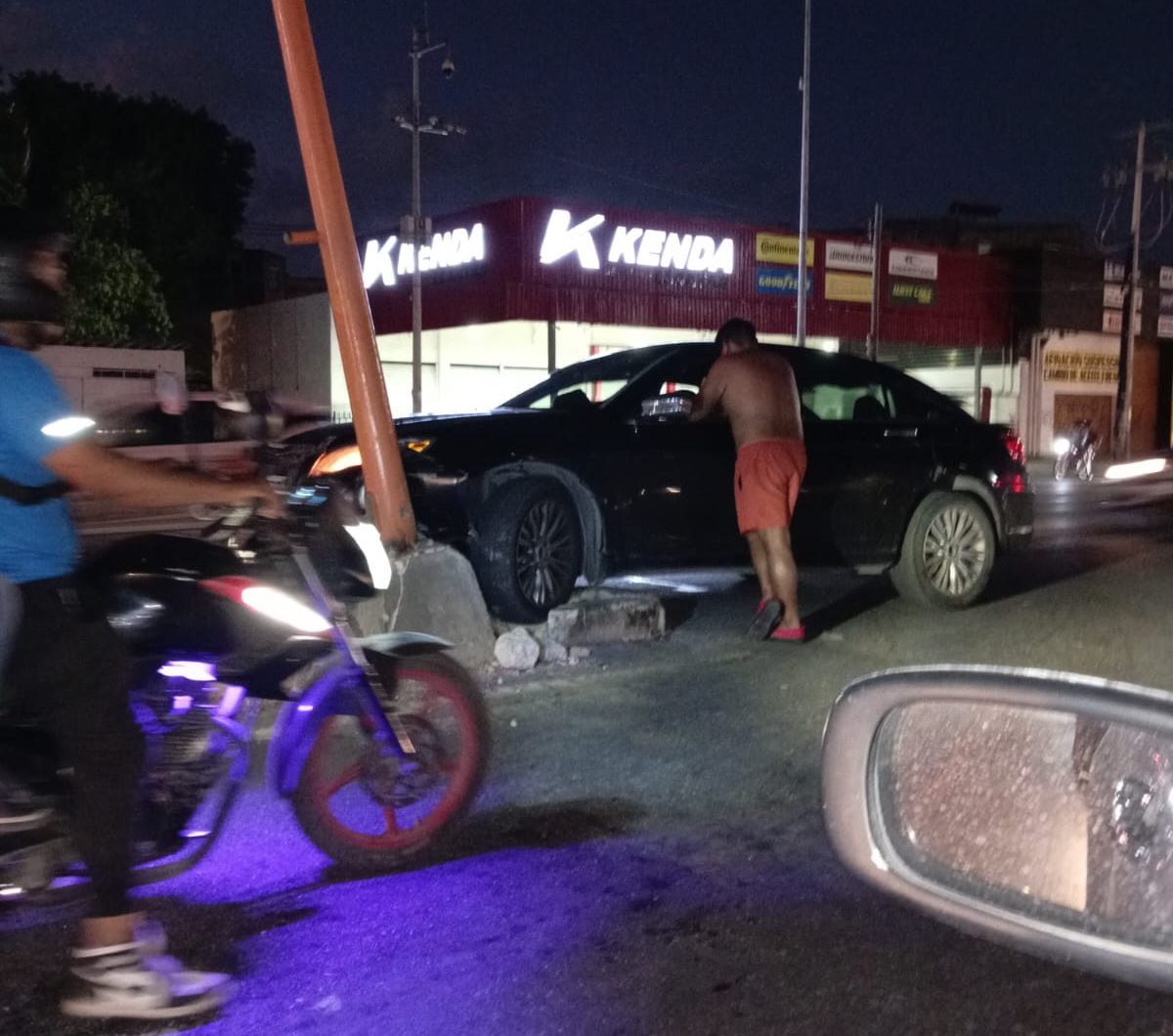 CANCÚN, Q. Roo, 14 de abril.- La imprudencia al volante volvió a cobrar factura esta noche del lunes en Cancún, cuando un automóvil conducido por un hombre en evidente estado de ebriedad se estampó violentamente contra un semáforo sobre la transitada avenida José López Portillo, a la altura de la Región 94.