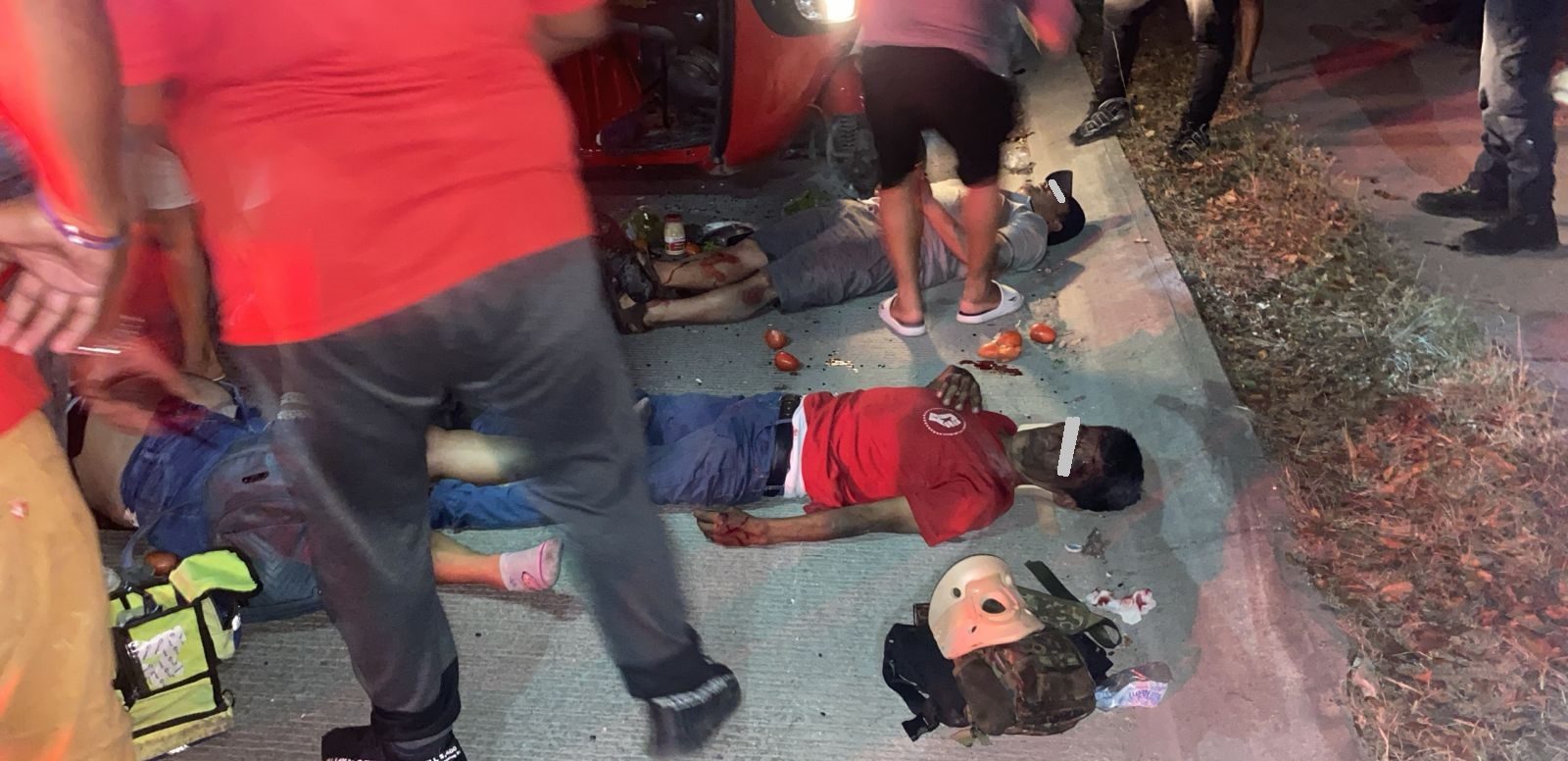 CANCÚN, Q. Roo, 21 de marzo.- Un mototaxi quedó completamente destrozado luego de ser brutalmente embestido por una camioneta en el periférico de Cancún, a la altura de Ciudad Natura, dejando a tres personas heridas y provocando una intensa movilización de los servicios de emergencia.