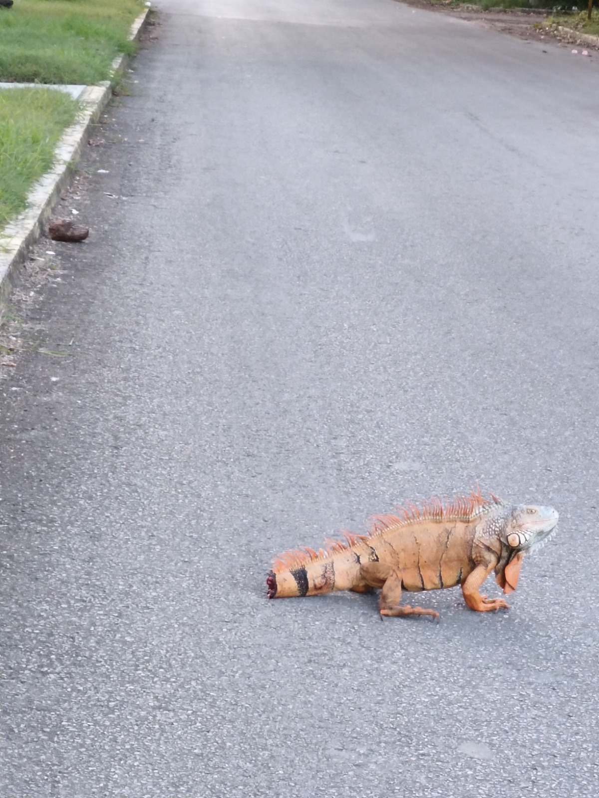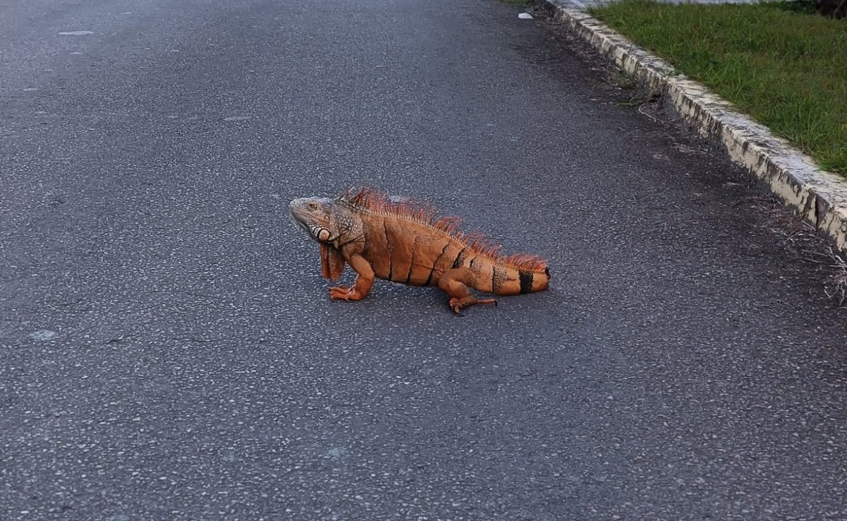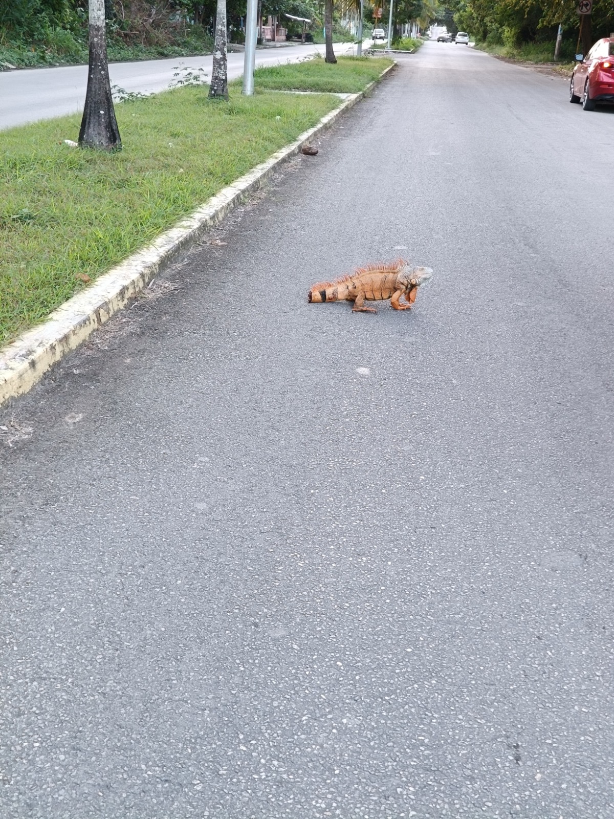 CHETUMAL, 14 de enero. Una escena que ilustra los efectos de la interacción humana sobre la fauna silvestre ocurrió en la calle Ignacio Comonfort de Chetumal, donde una iguana (comúnmente conocida como garrobo) fue encontrada herida, al parecer víctima de un atropellamiento.