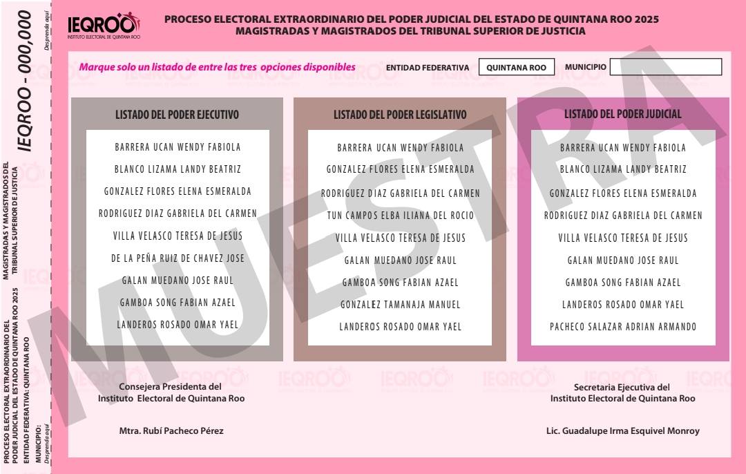 Cabe mencionar que la Sala Superior del TEPJF ya resolvió anteriormente una impugnación sobre las boletas de la elección federal, confirmando la legalidad y constitucionalidad del modelo que aprobó el Instituto Nacional Electoral (INE), que es el mismo que han replicado las entidades federativas donde hay elección, incluyendo Quintana Roo, hasta que el Teqroo ordenó utilizar otro modelo para voto por listas que no está previsto en las constituciones federal y local ni en las leyes general y estatal en materia electoral.