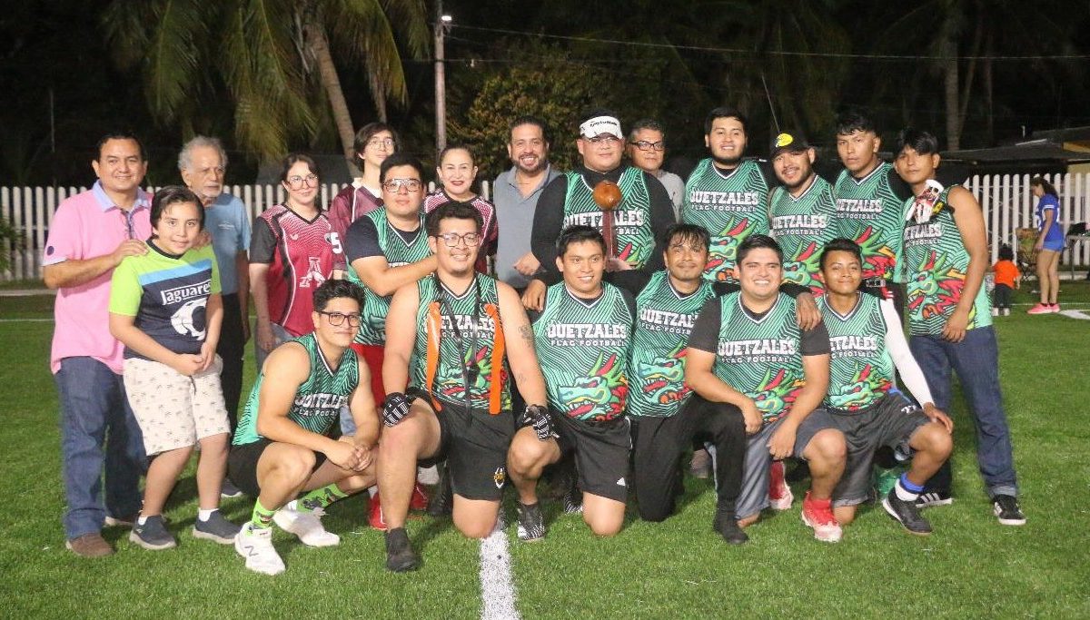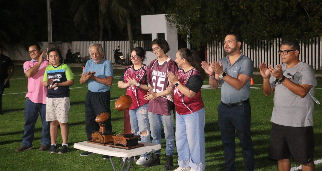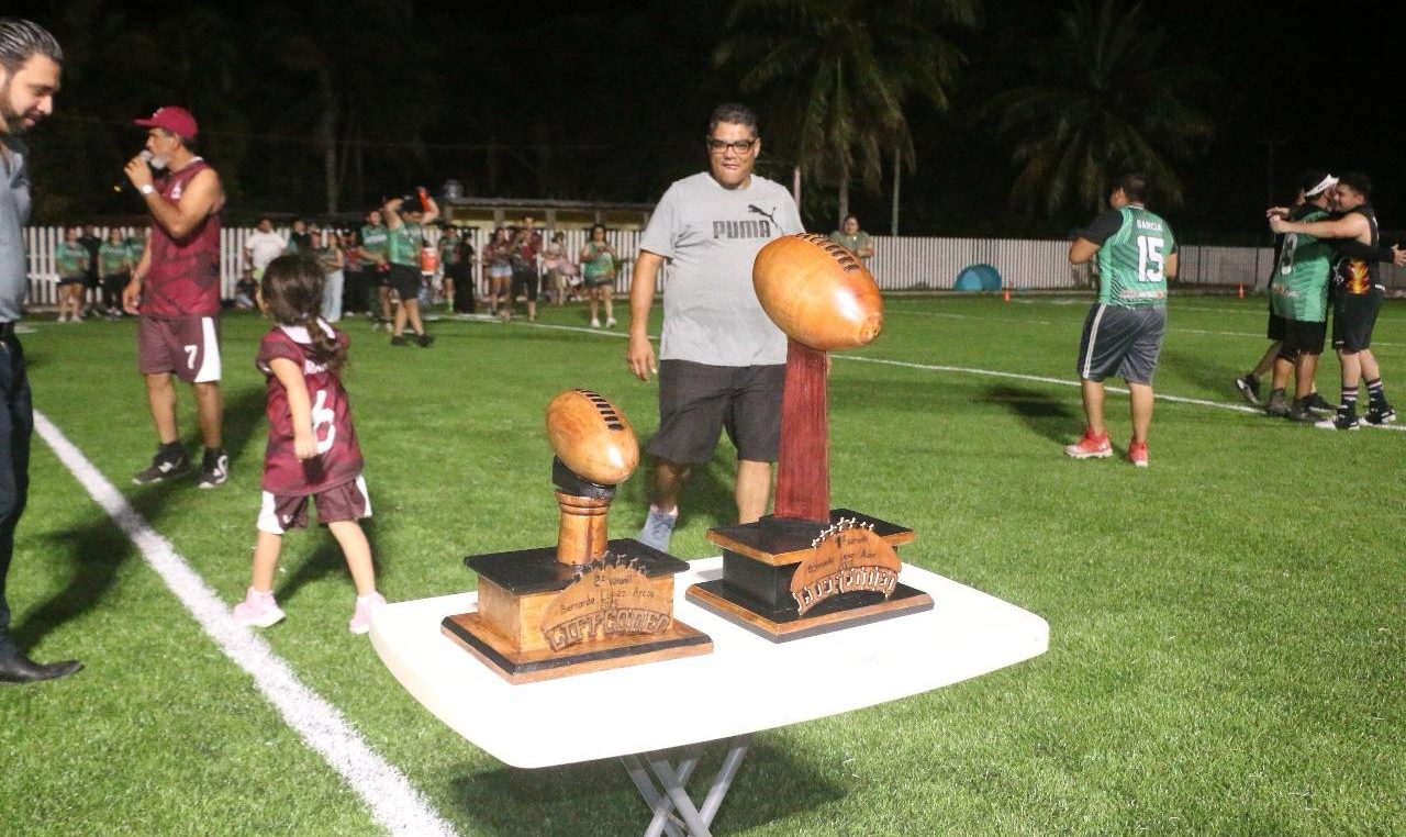“Nuestro compromiso es impulsar el desarrollo deportivo y promover actividades que aporten al bienestar físico y mental de la población. Aplaudimos esta primera Liga de Tocho Bandera en Chetumal, que además lleva el nombre del profesor Bernardo López Arcos, un referente del futbol americano en la región”, expresó Mario Ceballos, quien entregó los trofeos en representación de Jacobo Arzate Hop, presidente de la CODEQ.
