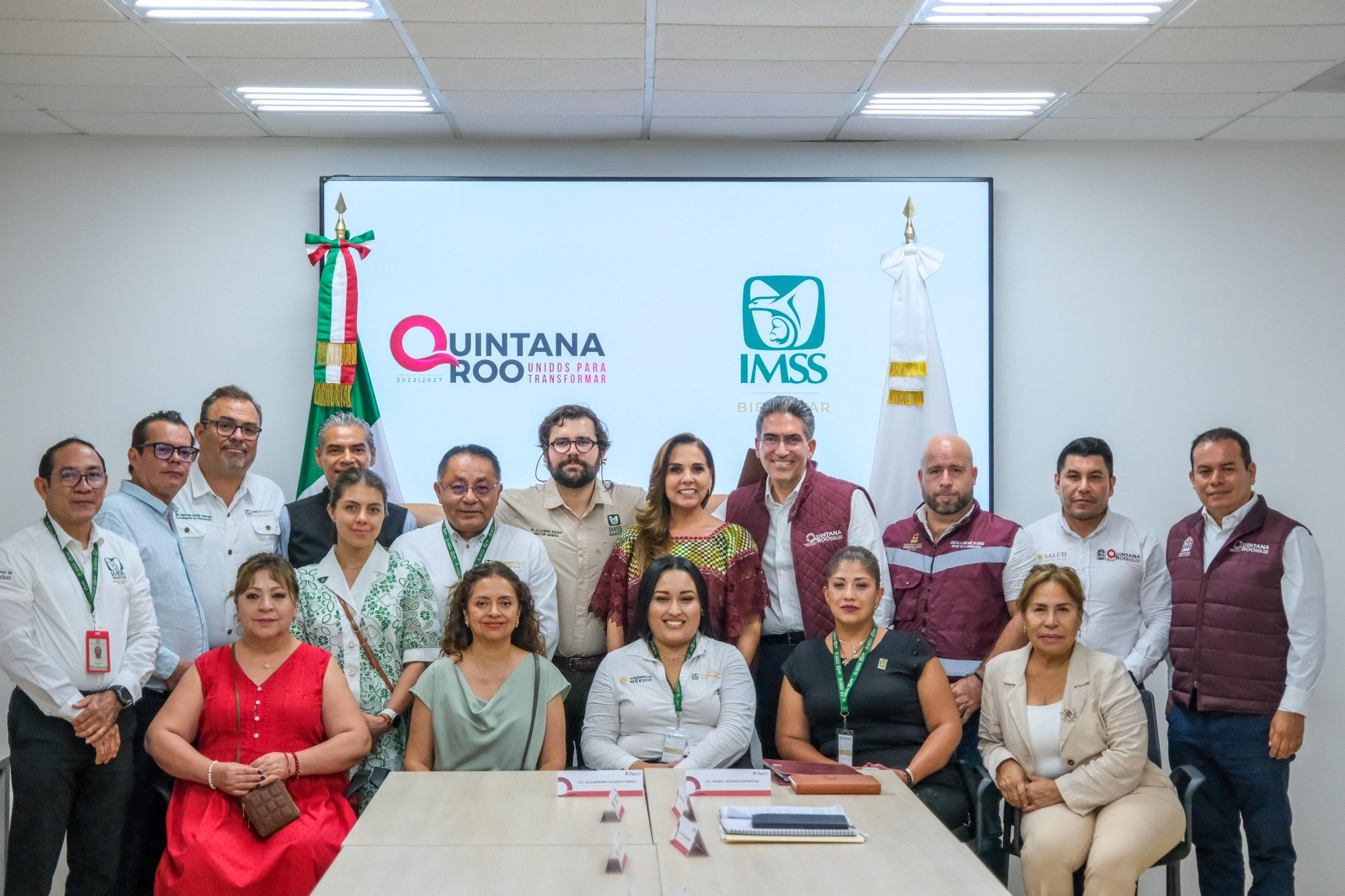 Participaron en la reunión de trabajo Maribel Lara Ortega, Coordinadora de Proyectos y Construcción del IMSS Bienestar; Moisés Alejandro Toledo Pensamiento, Coordinador del IMSS Bienestar en Quintana Roo; el senador Eugenio Segura; Flavio Carlos Rosado, secretario Estatal de Salud; Martha Parroquín, secretaria de Finanzas y Planeación, y José De la Peña Ruiz de Chávez, Jefe de Gabinete de la Gobernadora.