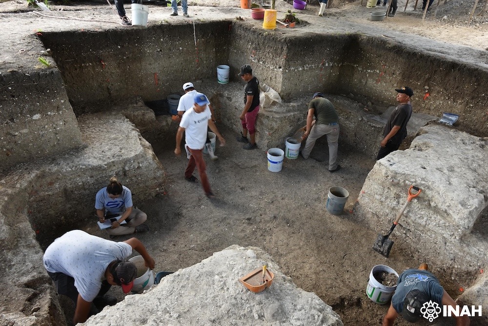 El equipo de investigación, del que forman parte las arqueólogas mexicanas Verónica A. Vázquez López y Melina García Hernández, descubrió en su interior 24 objetos con forma de hacha, realizados en arcilla sin cocer, algunos con restos de pigmento rojo, mientras que, al centro, se registró otro elemento cruciforme más pequeño, excavado a un metro de profundidad, directamente en la roca caliza.
