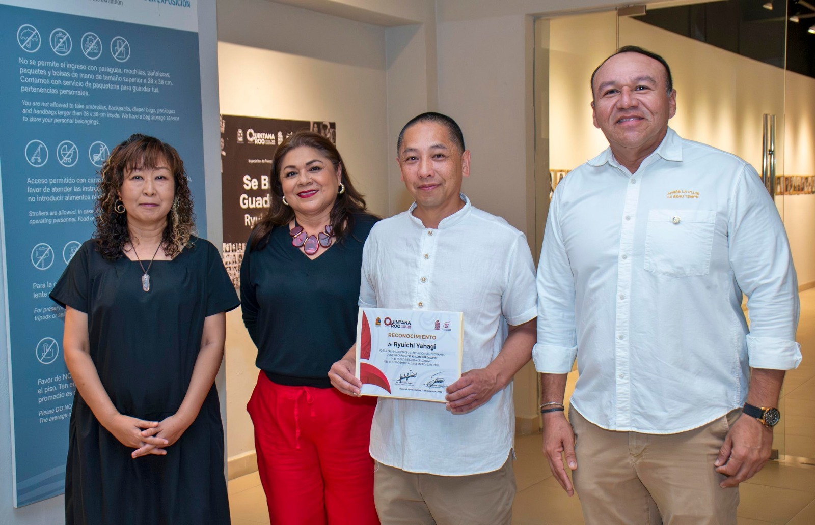 En representación de la directora general de la FPMC, Juanita Alonso Marrufo, Carrillo Cupul entregó un reconocimiento al artista, recordando que esta es su segunda exhibición en el centro museográfico, tras presentar en 2008 la colección “Colores entre el Cielo y la Tierra”.