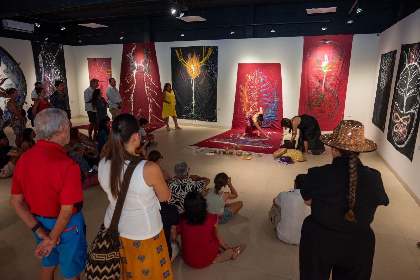 Durante el performance, que le dio vida a una nueva somagrafía ante la vista de las y los espectadores, la artista estuvo acompañada de Sako, museógrafa del recinto en el que permanecerá la exposición “Madre Tótem”, misma que puede disfrutar la comunidad de la isla, así como los visitantes al destino turístico.