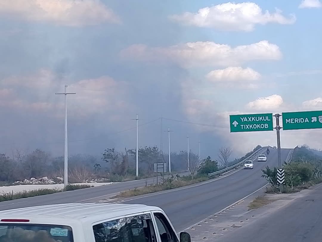 Las imágenes del incendio, que se registró el día de ayer, fueron compartidas por cientos de usuarios a través de redes sociales, mostrando la magnitud de las llamas y la intensa humareda que se generó en la zona, principalmente en las carreteras Motul-Mérida, tramo Mocochá-Conkal, y la vía Xcuyún-Yaxkukul.