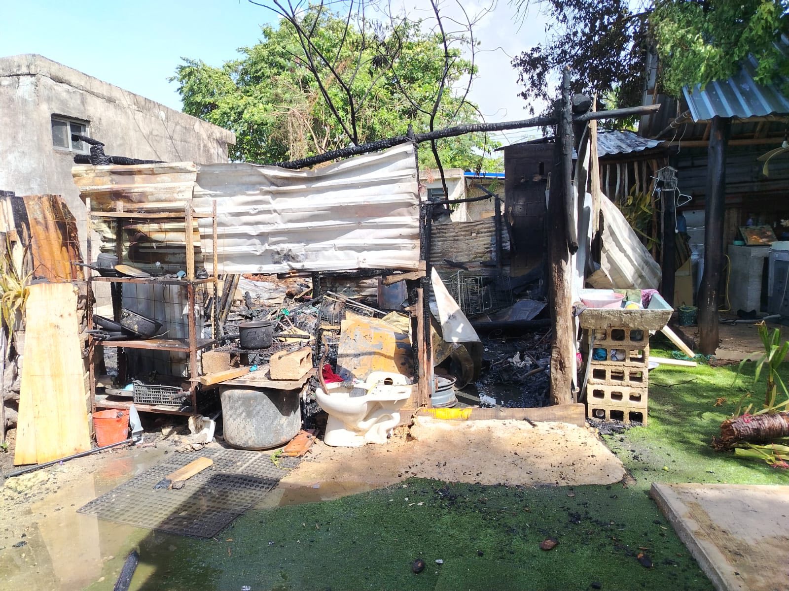 Chetumal, 18 de junio. – Un incendio de considerables proporciones se registró la tarde de este martes en la comunidad de Calderitas, luego de que una bodega construida con madera y láminas, ubicada en el patio trasero de una vivienda, fuera consumida por el fuego. El siniestro generó alarma entre los vecinos, quienes reportaron el hecho al número de emergencias.