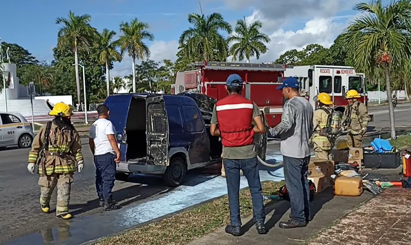 Una camioneta se incendió en la avenida Álvaro Obregón de Chetumal. Bomberos y policías sofocaron el fuego, sin reportarse heridos. La unidad quedó en pérdida total tras el siniestro