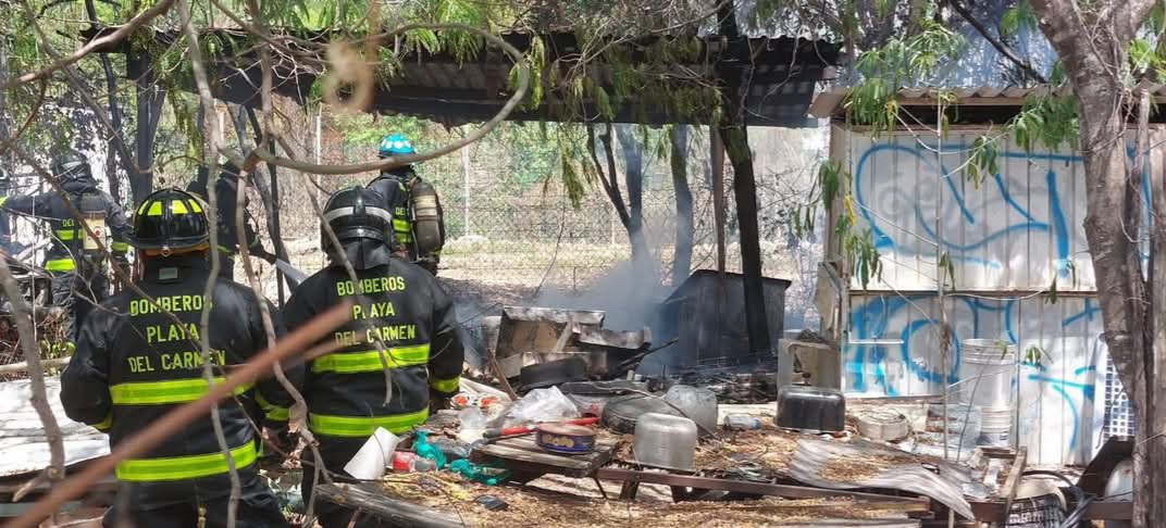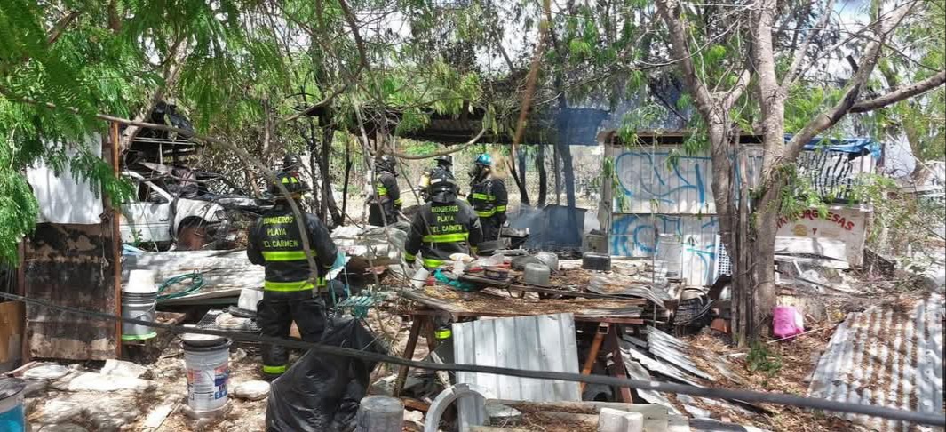Playa del Carmen, a 10 de mayo.- Un incendio en un predio utulizado como taller de herrería, ubicado cerca del fraccionamiento Marsella II, movilizó esta mañana a los elementos del Cuerpo de Bomberos de la ciudad.