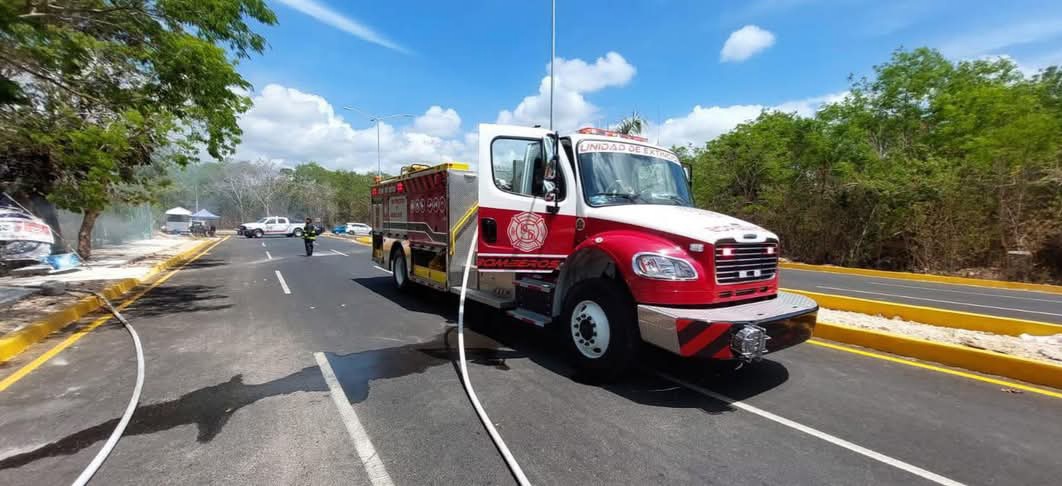 Los bomberos se dieron a la tarea de sofocar el incendio para evitar que alcanzara algunas palapas cercanas y un área que por la temporada se encuentra con maleza seca, por lo que las posibilidades de extenderse rápidamente.
