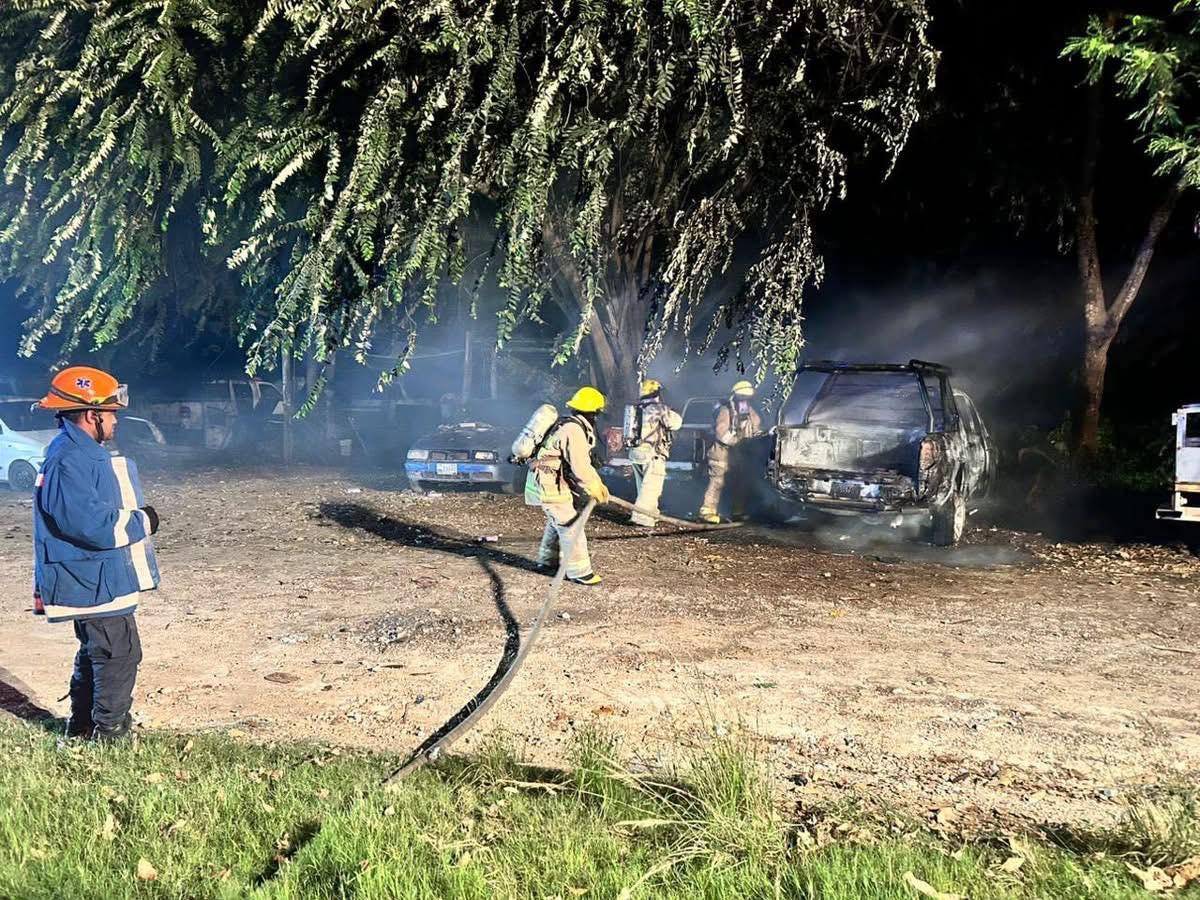 Un automóvil quedó reducido a cenizas y otro resultó con daños parciales tras un incendio en la colonia Fraternidad Antorchista. Bomberos evitaron que el fuego alcanzara más vehículos o viviendas