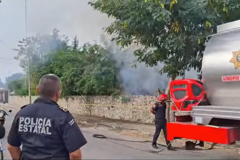 Incendio en un Terreno Baldío en el Oriente de Mérida Movilizó a Elementos de Siniestros y Rescates de la SSP