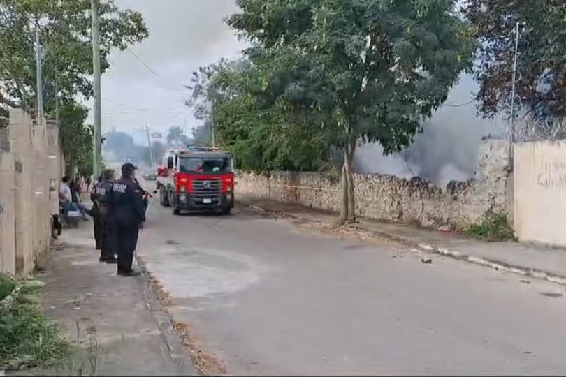 Incendio en un Terreno Baldío en el Oriente de Mérida Movilizó a Elementos de Siniestros y Rescates de la SSP