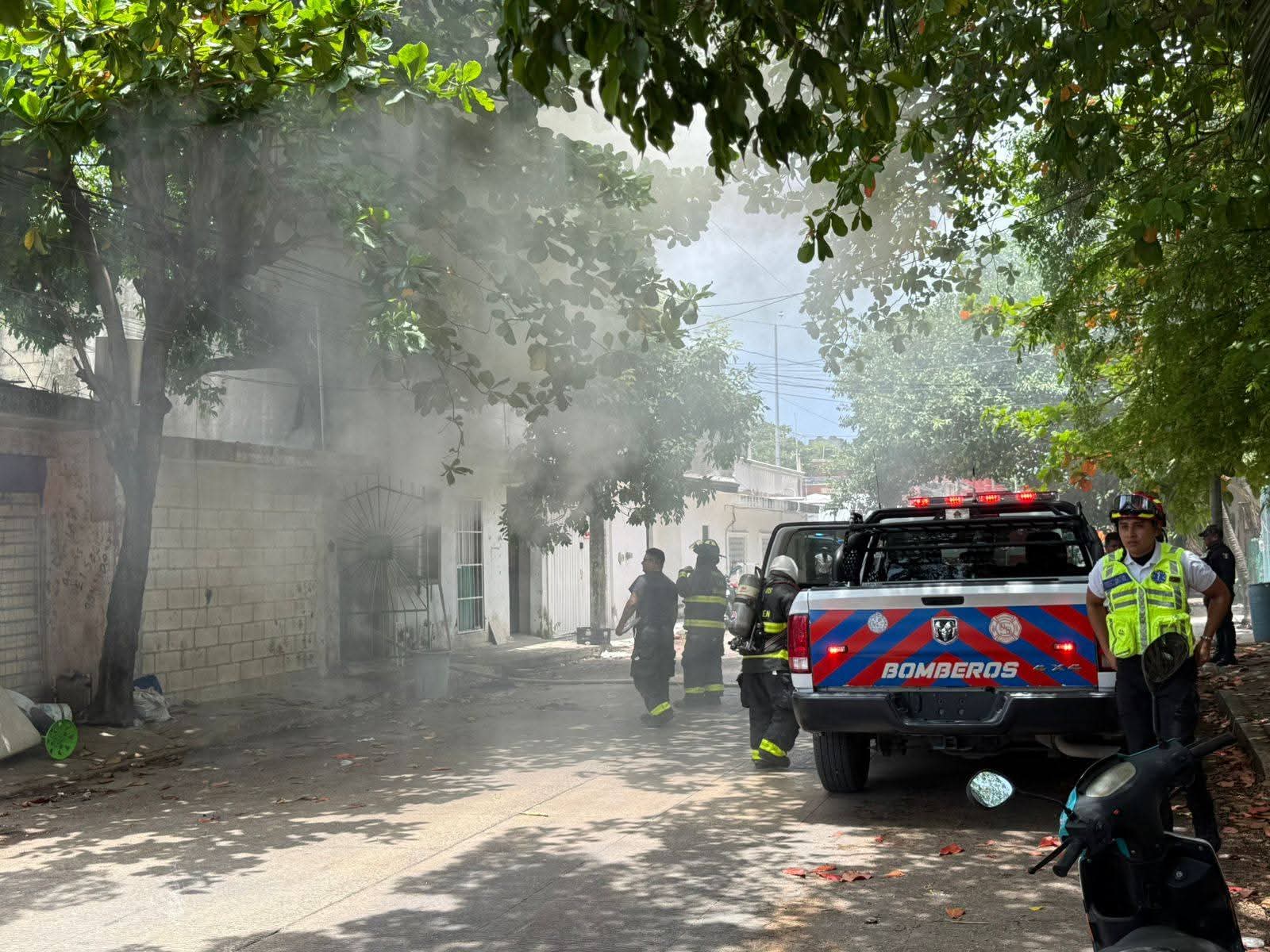 Playa del Carmen, a 2 de julio de 2025.- Un hombre resultó con quemaduras de segundo y tercer grado y se lleva a cabo una evacuación de familia con niños tras un incendio registrado en una cuartería ubicada en la Calle 80 con Avenida 25, en la colonia Luis Donaldo Colosio en Playa del Carmen.