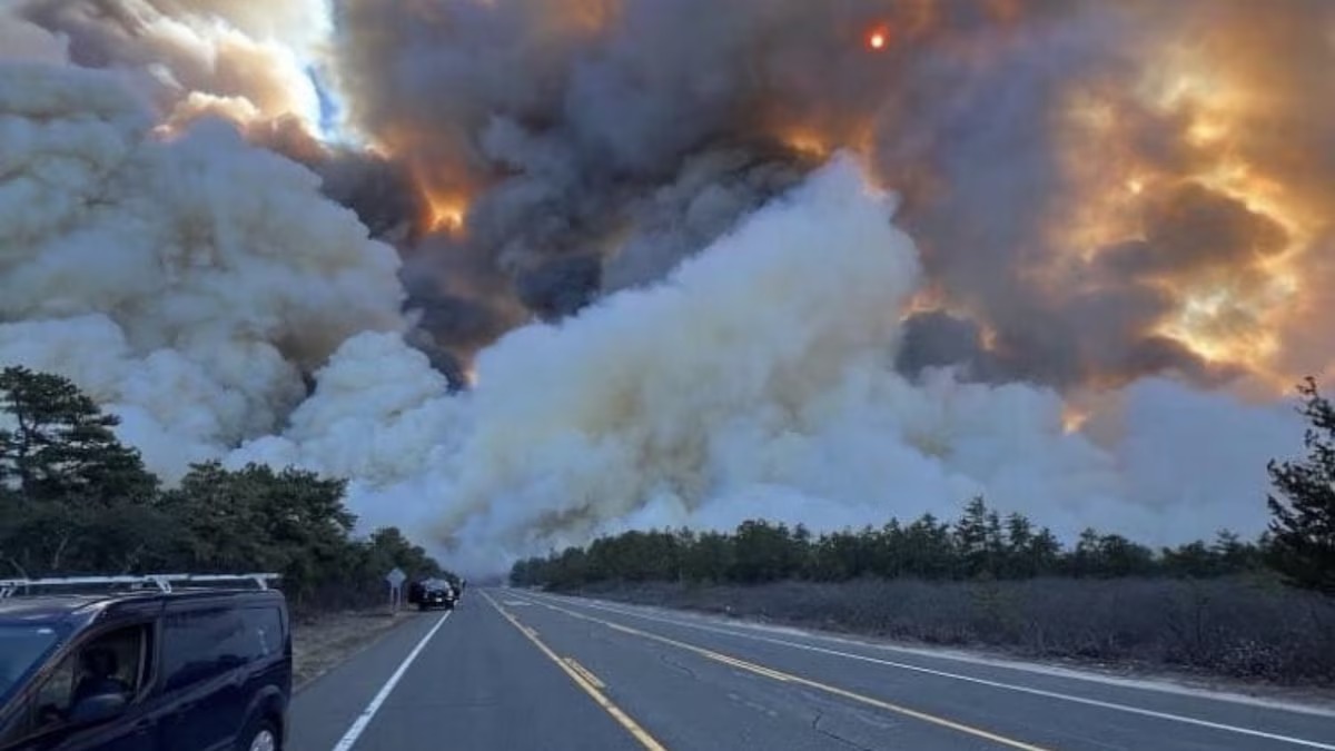 Incendios forestales de rápida expansión consumieron una vasta área en Long Island, Nueva York, el sábado, impulsados por fuertes vientos que generaron densas nubes de humo gris, obligaron a evacuar una base militar y provocaron el cierre de una carretera principal. Las autoridades reportaron que tres de los cuatro incendios estaban completamente controlados, mientras que el de Westhampton tenía un 50 % de contención.