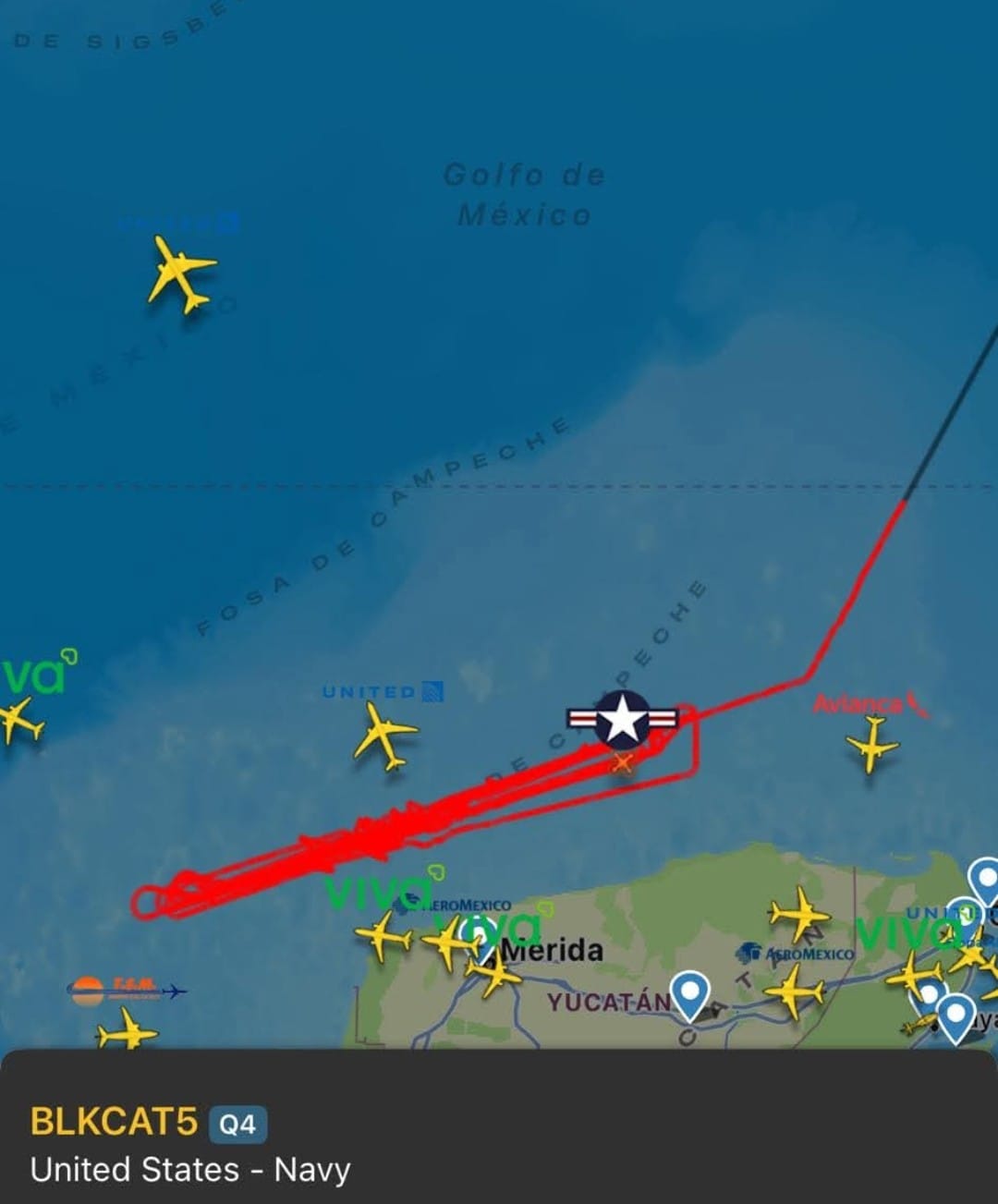 En el amanecer de este miércoles 21 de Enero se detectó otro sobrevuelo de una aeronaves de la U.S. Navy cercano a las costas de Yucatán