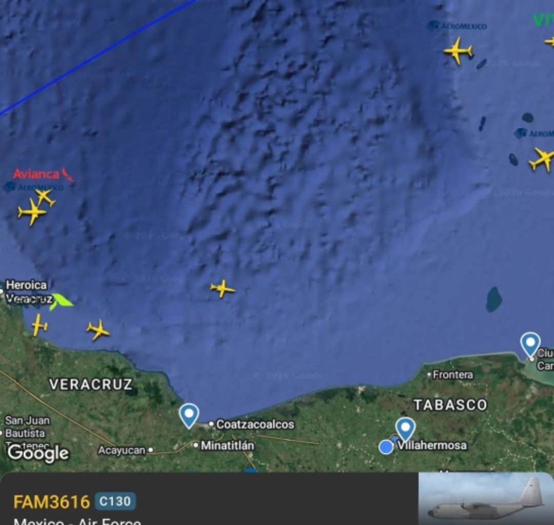 De acuerdo con registros públicos de plataformas de seguimiento aeronáutico, alrededor de las tres de la tarde un avión militar tipo Super Hércules C-130 J-30, con matrícula 14-5791, realizó maniobras a menos de 25 millas náuticas de Isla Mujeres y Cancún, dentro del espacio aéreo internacional cercano al Caribe mexicano.