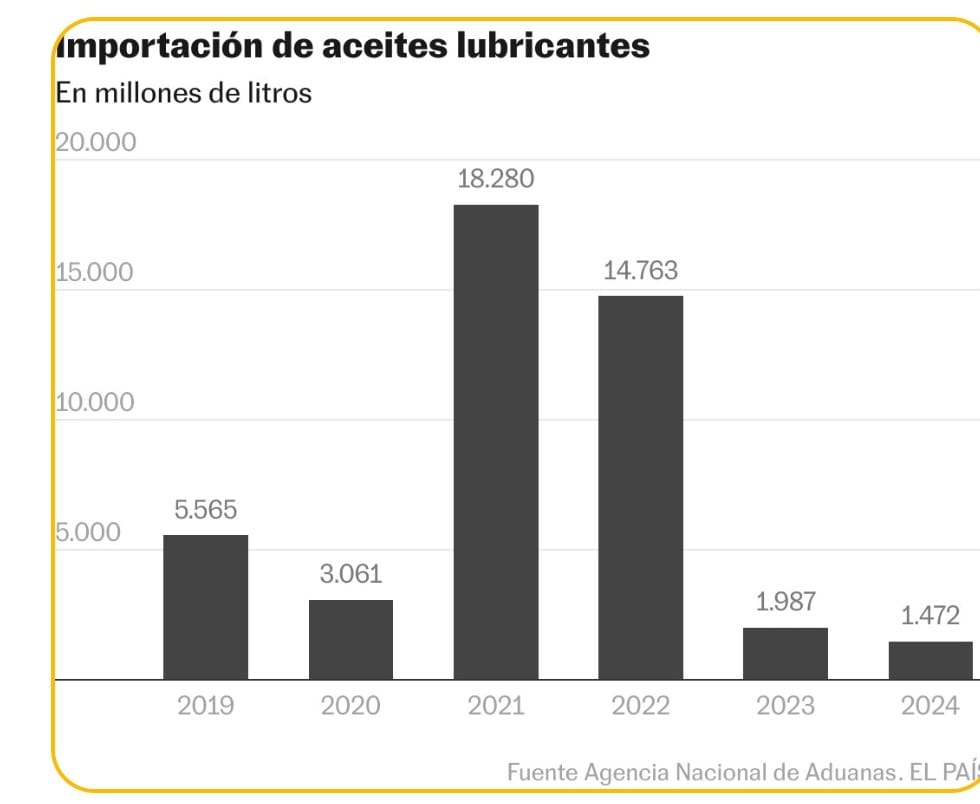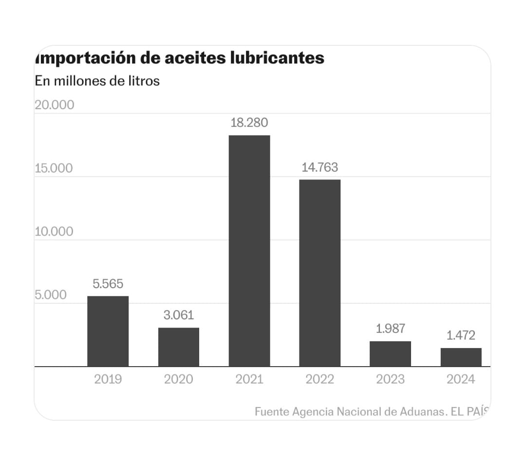 • La Agencia Nacional de Aduanas registra, entre 2021 y 2022, un crecimiento ilógico y desmesurado de las importaciones de aceites y lubricantes