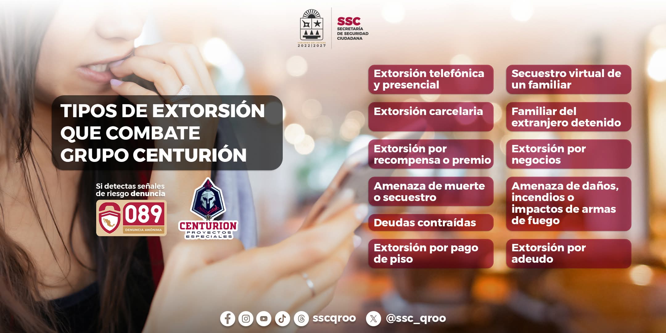 La campaña difundida por la SSC bajo el lema “¡Denuncia la extorsión!”, exhorta a la ciudadanía a no responder llamadas de números desconocidos y no proporcionar información personal o financiera. En caso de recibir mensajes o llamadas con amenazas, se recomienda colgar de inmediato y comunicarse de forma anónima al 089, la línea de denuncia que opera las 24 horas del día.