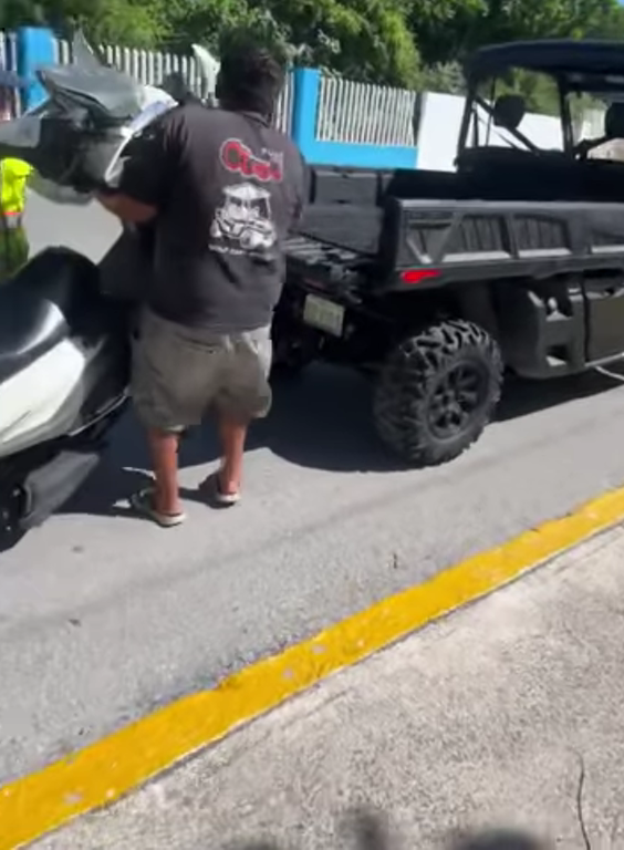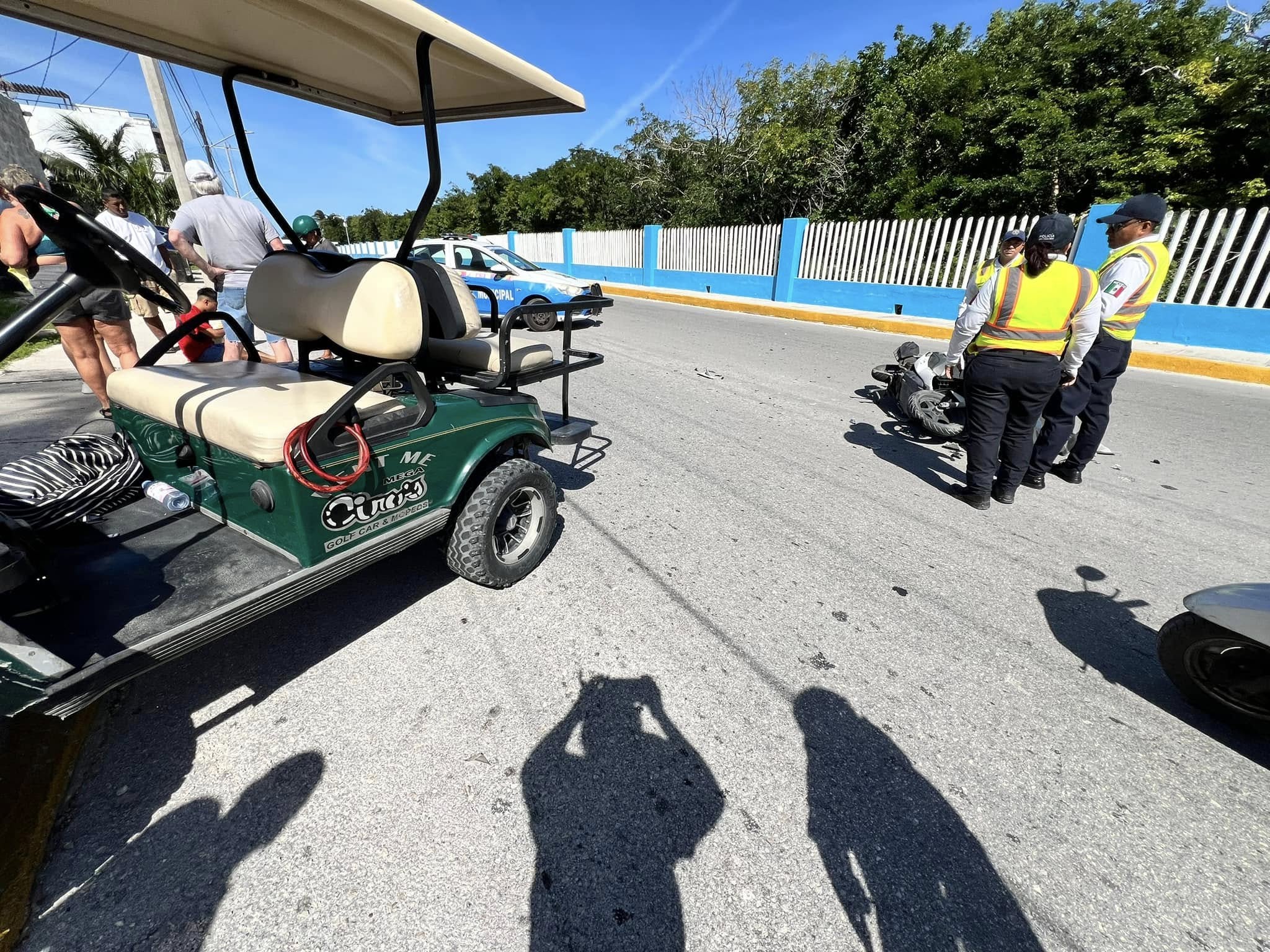 Como Cambio 22 publicó de manera oportuna, el día de ayer unos turistas que manejaban un carrito de golf de la arrendadora Ciro’s provocaron que la motocicleta de un repartidor de comida a domicilio que trabaja en un restaurante local impactase contra la unidad de alquiler.