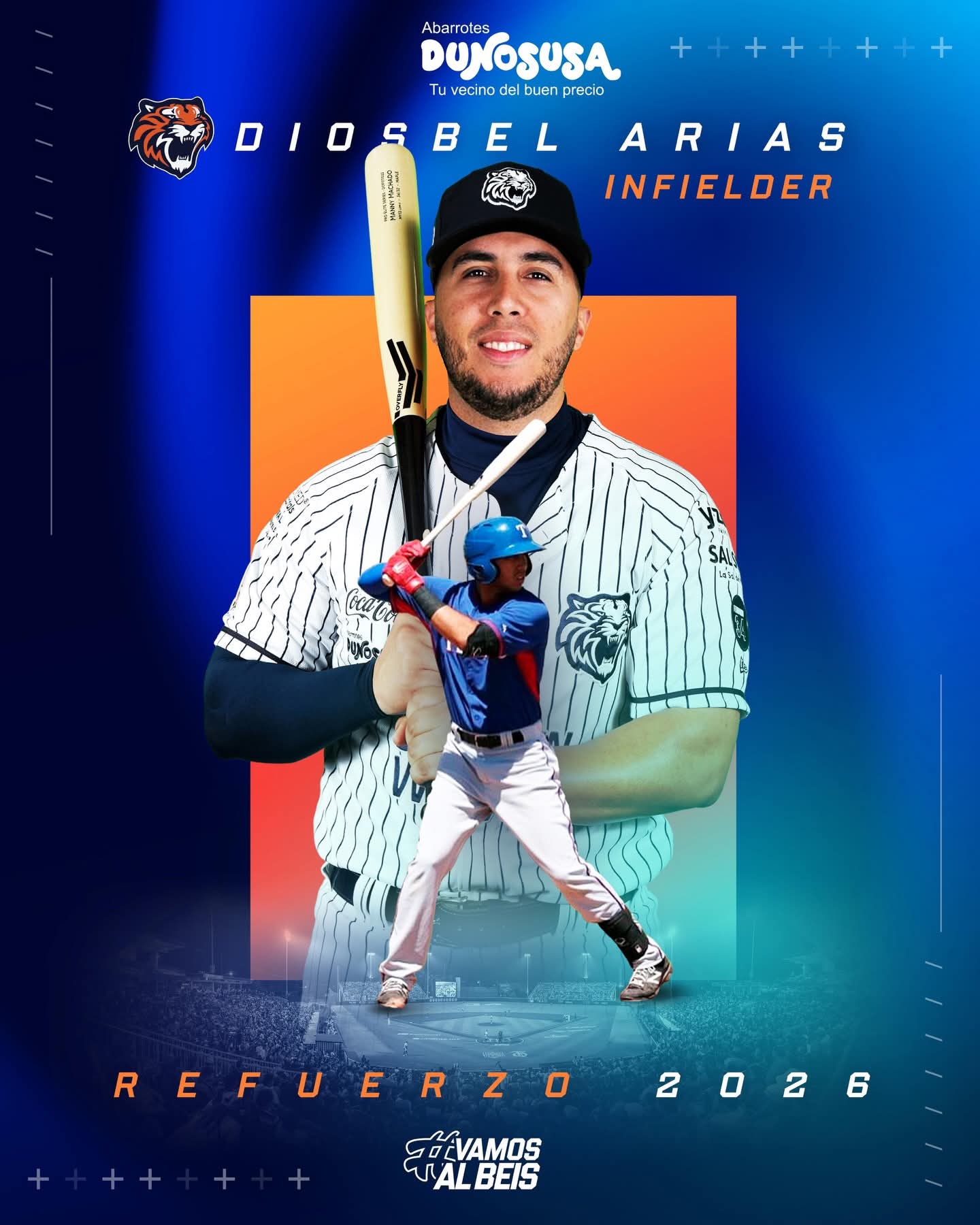 Hace unos días la organización bengalí dio a conocer el regreso del estadounidense JJ Matijevic para la Temporada 2026 de la LMB, y ahora han hecho oficial el arribo del jugador de cuadro Diosbel Arias, quien vestirá su cuarta franela en el circuito veraniego desde su primera incursión en el 2024